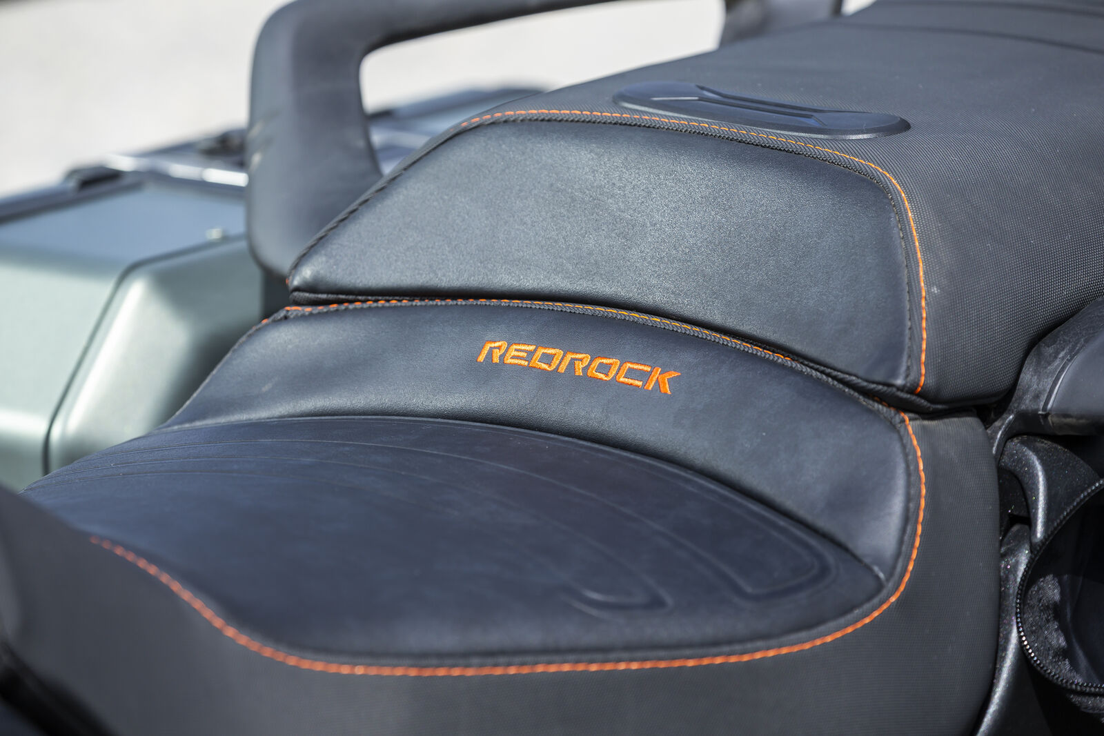 Im Herzen der Canyon Redrock schlägt der Rotax 1330 ACE Motor, ein leistungsstarker Antrieb mit 115 PS und elektronischer Kraftstoffeinspritzung. Diese Kombination sorgt für eine kraftvolle Beschleunigung und ein reibungsloses Fahrgefühl, das sowohl auf der Straße als auch im Gelände überzeugt. Das Fahren wird durch die elektronische Drosselklappensteuerung und das elektronische Servolenkungssystem zusätzlich erleichtert. Ein Highlight ist die Möglichkeit, ohne Kupplung zu schalten – dank der intuitiven Plus- und Minus-Tasten am Lenker. Man muss nur die Gänge hochschalten, während das Herunterschalten automatisch erfolgt, was eine entspannte und flüssige Fahrweise fördert. Besonders bemerkenswert ist die direkte Gasannahme, die in Kombination mit den verschiedenen Fahrmodi für jedes Terrain ein individuelles Fahrgefühl ermöglicht.
