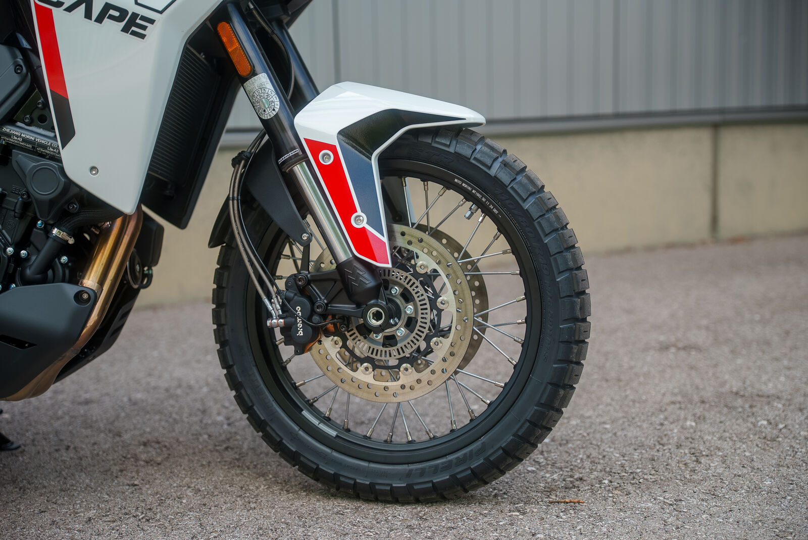 Das Fahrwerk der Moto Morini XCE 700 ist auf Abenteuerreisen ausgelegt und bietet sowohl auf der Straße als auch im leichten Gelände ein hohes Maß an Komfort. Mit einer 50 mm Upside-Down-Gabel und einem Kayaba Monoshock-Stoßdämpfer ist das Fahrwerk sowohl in der Federvorspannung als auch in der Dämpfung verstellbar. Die 19-Zoll-Vorderräder und das 17-Zoll-Hinterrad sorgen für eine direkte und präzise Handhabung, während die Pirelli Scorpion-Reifen für ausgezeichneten Grip auf verschiedenen Untergründen sorgen. Der entscheidende Vorteil der Moto Morini liegt in der Agilität und Dynamik, die sie im Vergleich zu anderen Motorrädern ihrer Klasse bietet. Ihre Handhabung ist spielerisch und ermöglicht es dir, schnell durch Kurven zu navigieren, was das Fahrerlebnis besonders aufregend macht.
