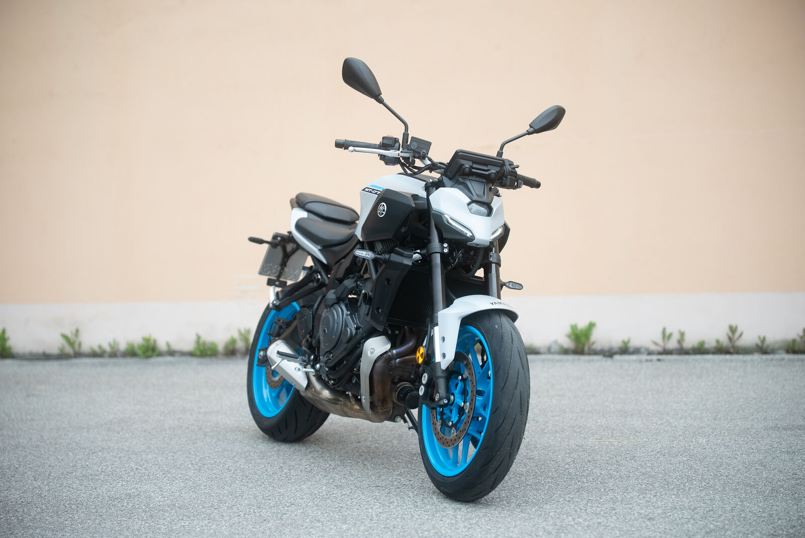 Das Herzstück der MT-07 ist der Yamaha CP2-Motor. Er beschleunigt die Maschine mit Leichtigkeit und sorgt für ein aufregendes Fahrgefühl. Dank der neuen YAM-Transmission kann der Fahrer zwischen automatischem und manuellem Schalten wählen. Diese innovative Technologie ermöglicht es, die Gänge bequem über Schaltwippen zu wechseln, ohne die Kupplung zu betätigen. Für diejenigen, die die traditionelle Art des Schaltens bevorzugen, gibt es die Standardversion, die etwa 500 Euro günstiger ist. Diese Version kann optional mit einem Quickshifter ausgestattet werden, der das Schalten noch angenehmer macht. Auf der Straße zeigt sich die MT-07 von ihrer besten Seite: der Motor zieht kräftig an und begeistert mit seiner agilen Reaktion.