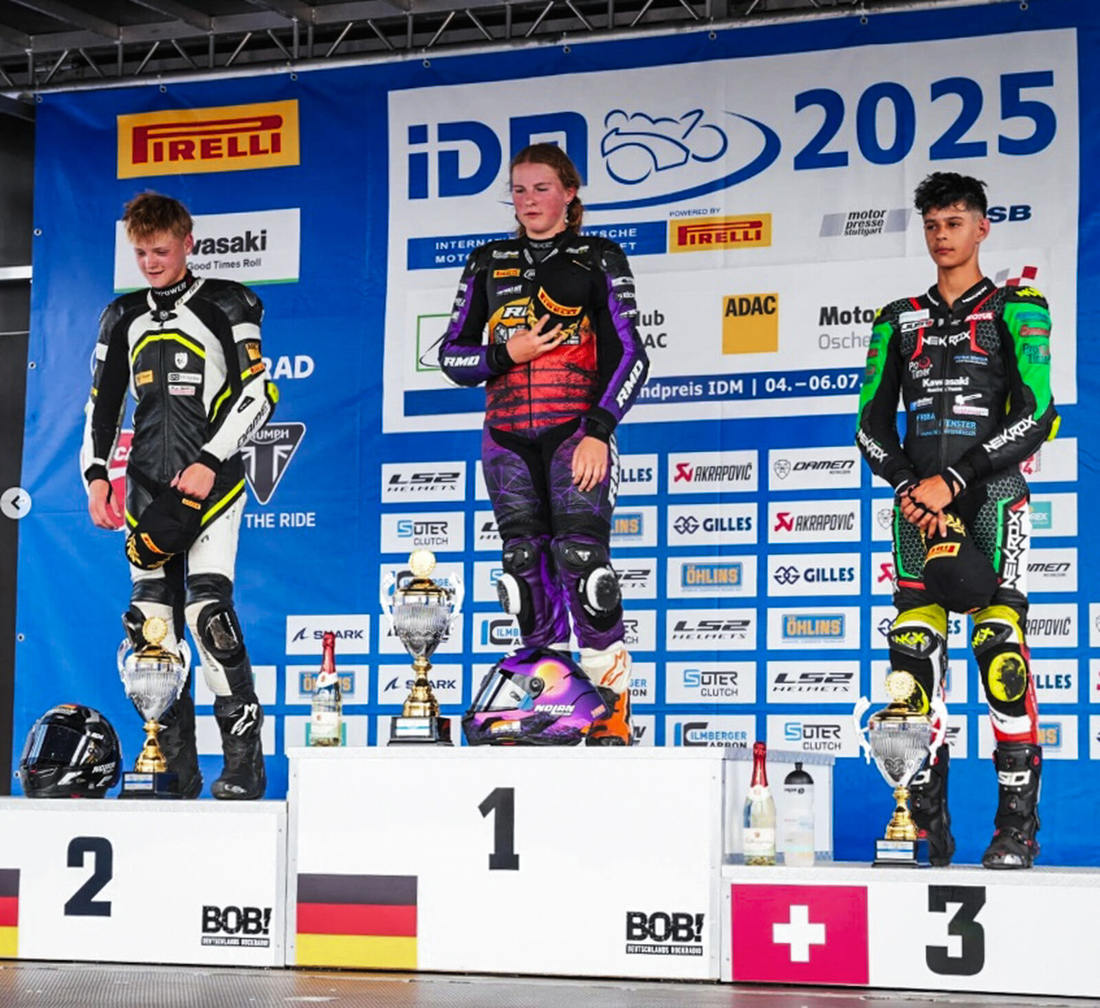 Über Nacht stellte das Team von Kauertz das beschädigte Motorrad vollständig wieder her – mit Erfolg. Im zweiten Lauf entwickelte sich ein hochspannender Zweikampf zwischen Kauertz und Wiegner, der über die gesamte Distanz anhielt. Am Ende setzte sich Kauertz mit einem hauchdünnen Vorsprung von 0,103 Sekunden durch – ein emotionaler Sieg nach dem bitteren Aus am Vortag. Auch der Kampf um Rang drei war ein Fotofinish: Luna Köckritz sicherte sich erneut einen Podestplatz – nur 0,054 Sekunden vor Müller, der sich über einen starken vierten Platz freuen darf. Für das Team Nittke (#12 und #21) endete das Rennen vorzeitig.