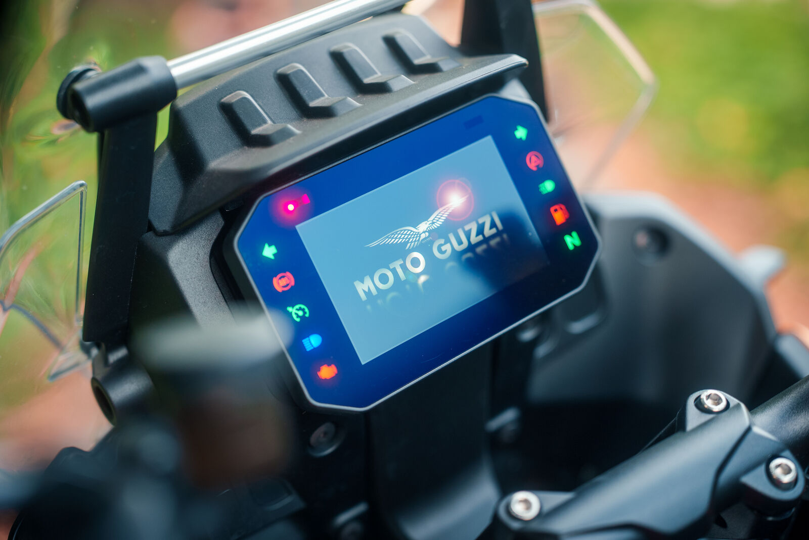 Die Moto Guzzi Stelvio verbindet klassische Moto Guzzi-Qualitäten mit modernster Technik. Auf den ersten Blick fällt das eigenständige Design auf – kaum sichtbare Kabel, das Motorrad als tragendes Element, matte Lackierung, große Speichenfelgen und ein stimmiges Gesamtbild, das sich bewusst vom GS-Stil absetzt. Gleichzeitig bringt die Stelvio zahlreiche Features mit, die man nicht unbedingt erwartet: Temperaturgeregelte Sitzheizung und Heizgriffe serienmäßig, ein elektronisch verstellbares Windschild, USB-Port vorne, Blind-Spot-Warnung über seitliche Radarpunkte, ein Welcome-Light sowie vielfältige Komfortdetails. Bemerkenswert ist auch der Abstandstempomat, der von Piaggio / Piaggio Fast Forward entwickelt wurde, sowie die Radarsysteme vorn und hinten, die neben dem Abstandhalten auch Collision-Warnung bieten. Diese Mischung aus Stil, Technik und durchdachter Ausstattung hebt die Stelvio klar vom Wettbewerb ab.