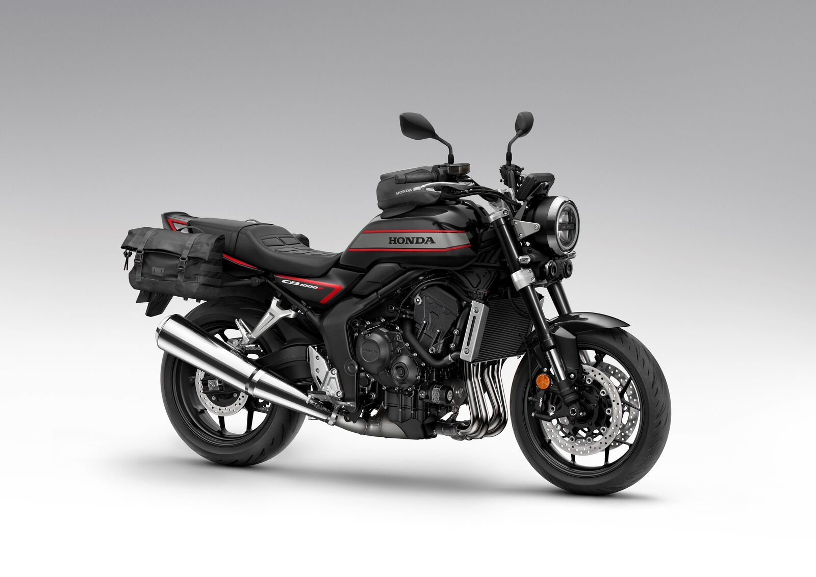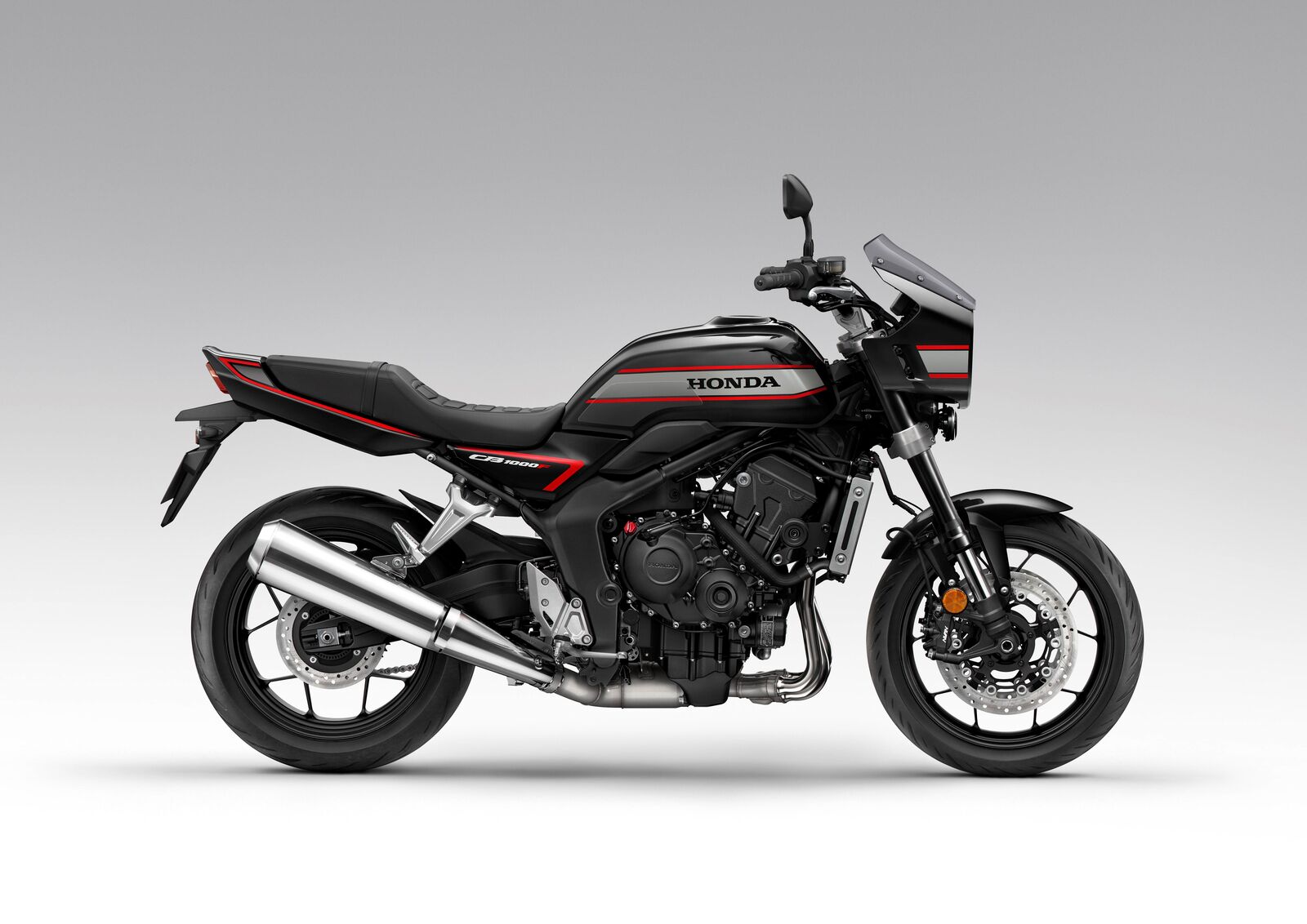 Technisch basiert die CB1000F auf der 1000er Hornet, unterscheidet sich jedoch durch einen modifizierten DOHC-Reihenvierzylinder mit starkem Fokus auf Drehmoment im unteren und mittleren Drehzahlbereich. Der Motor, abgeleitet von der CBR1000RR Fireblade (Modelljahr 2017), bietet 91 kW (122 PS) bei 9.000 U/min und 103 Nm bei 8.000 U/min – perfekt abgestimmt für entspanntes wie druckvolles Fahren. Die abgestimmten Getriebeübersetzungen, die Anti-Hopping-Kupplung und der markante 4-2-1-Auspuff sorgen für ein charakterstarkes, geschmeidiges Fahrerlebnis. Optisch zitiert die CB1000F mit ihrer durchgehenden Linienführung, dem gestreiften Tankdekor und dem freigelegten Stahlrohrrahmen klar die Bol d'Or-Vorbilder. Dazu kommt moderne Technik wie eine voll einstellbare Showa-Gabel, Radialbremsen mit Kurven-ABS und ein 5-Zoll-TFT-Display mit Honda RoadSync-Konnektivität – kombiniert mit Smartkey und vollständiger LED-Beleuchtung.