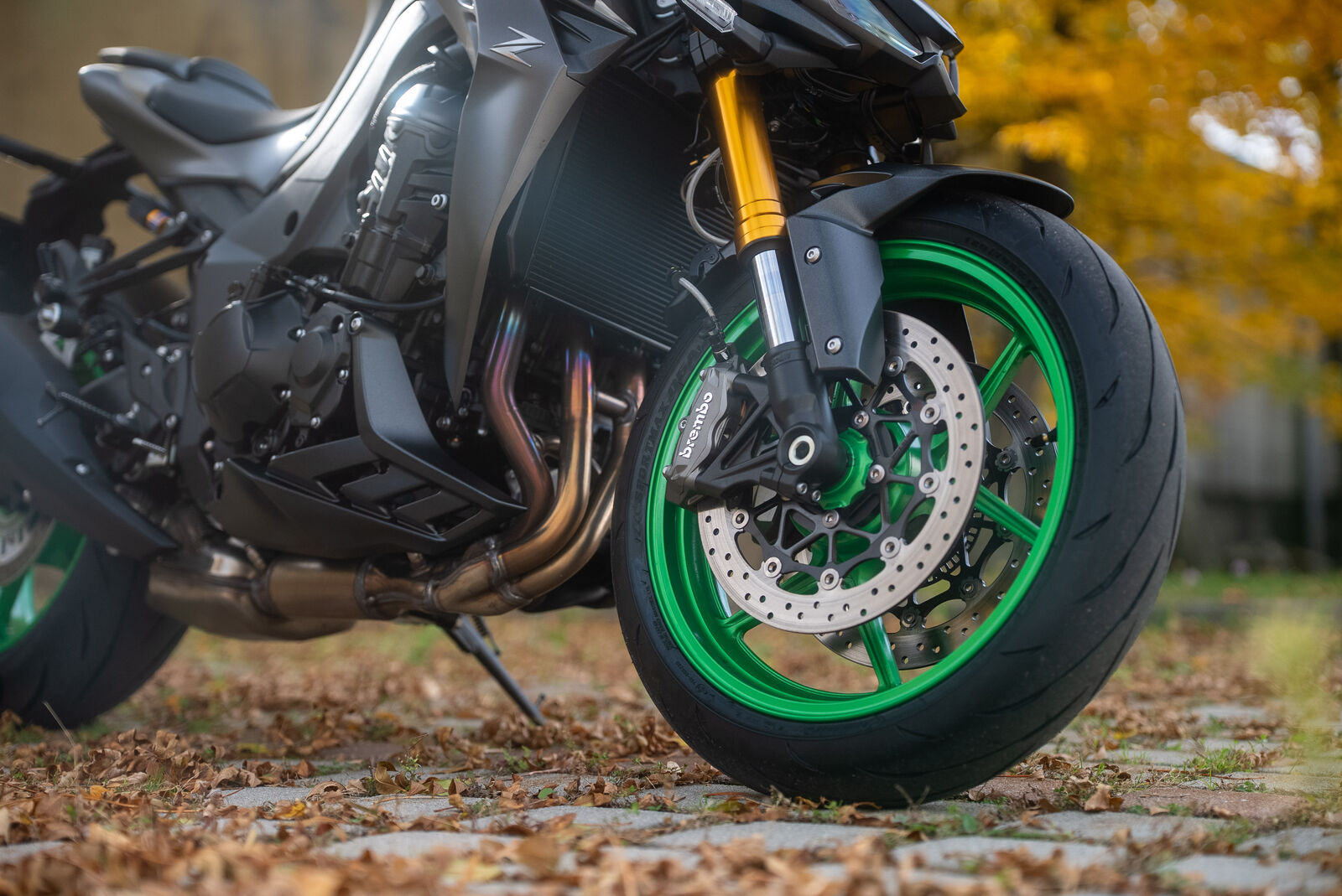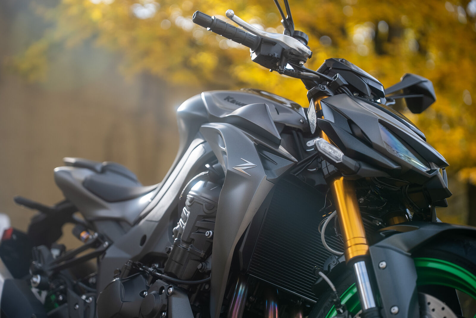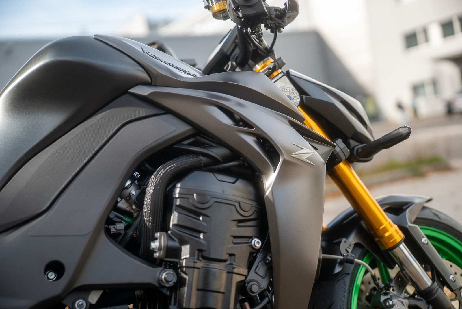 Ein weiterer wichtiger Aspekt der Z1100 ist das Fahrwerk, das völlig neu abgestimmt wurde. Die Sitzposition ist im Vergleich zur Z1000SX und Z900 deutlich sportlicher und dynamischer. Der breite Lenker sorgt für ein sicheres und stabiles Fahrgefühl, während das Gewicht des Motorrads mit 221 kg für eine gute Agilität sorgt.