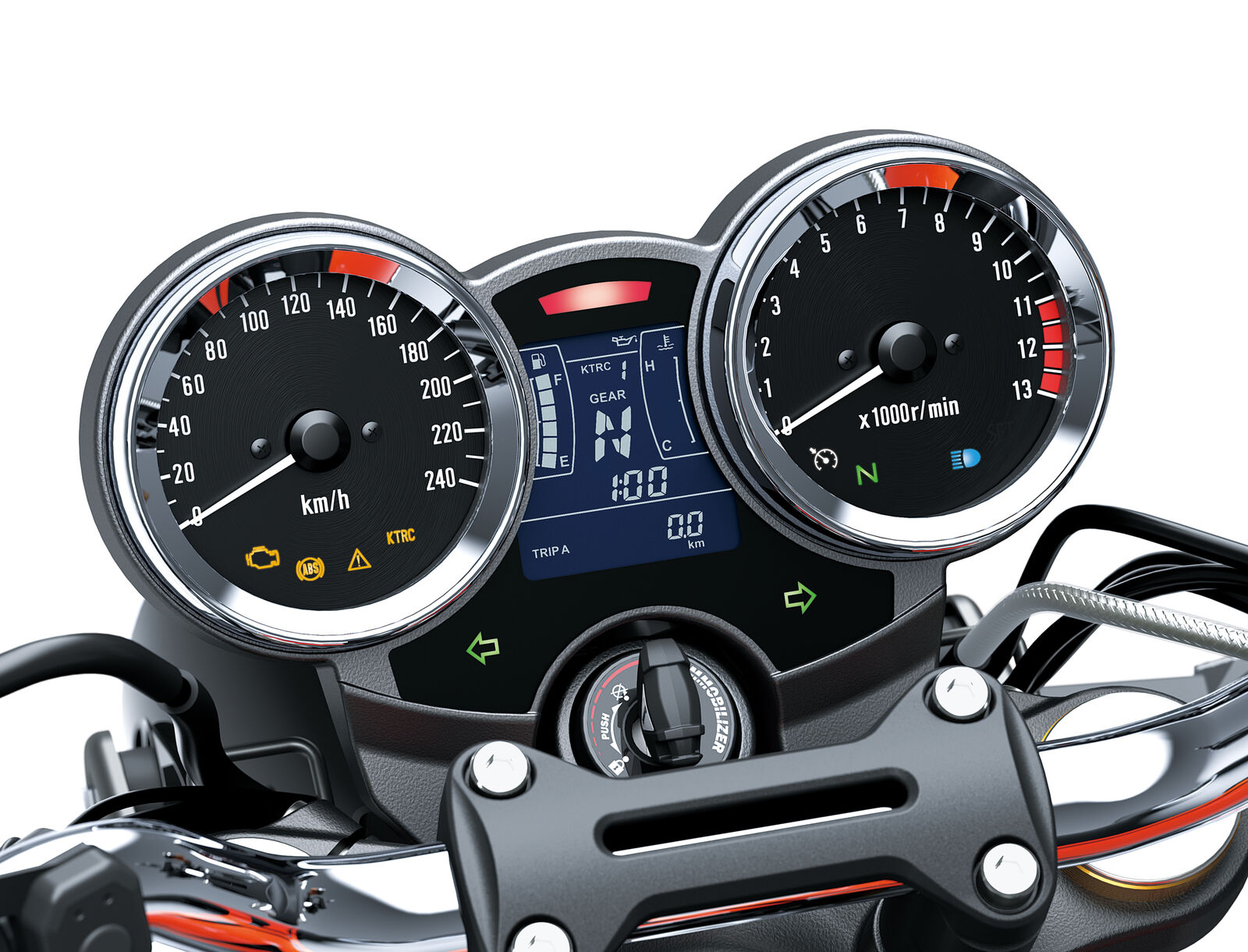 Die SE-Variante richtet sich an Fahrer, die noch mehr Komfort und Premium-Features wünschen. Sie verfügt über Brembo-Bremssättel mit 300-mm-Scheiben vorne, Stahlflexleitungen und ein hochwertiges Öhlins-Federbein, das sich bequem über ein Handrad am Rahmen einstellen lässt. Ein USB-C-Anschluss am Lenker sorgt für zusätzliche Vernetzungsmöglichkeiten. Optisch setzt die SE-Variante auf das legendäre „Fireball“-Design mit orangefarbenen Seitenflächen auf metallic-schwarzem Grundton. Das Standardmodell ist in „Blackball“ mit Retro-Emblemen oder in „Candy Tone Red“ erhältlich, das die Farbgebung der Z1B von 1975 zitiert. Sowohl in Technik als auch Design lebt damit die große Kawasaki-Tradition weiter.