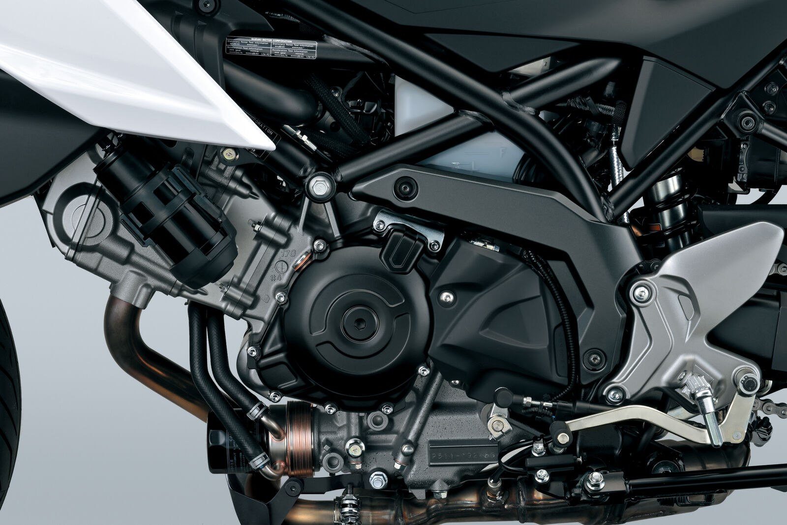Das Kernstück der SV-7GX ist der kultivierte, flüssigkeitsgekühlte 645-cm³-90°-V-Twin. Mit 73,4 PS bei 8.500 U/min und 64 Nm bei 6.800 U/min liefert der Motor eine charakterstarke, drehfreudige Performance, die jede Kurve zu einem Erlebnis macht. Moderne Elektronik wie Ride-by-Wire, SDMS-Fahrmodi, Traktionskontrolle, Low-RPM-Assist und Easy Start sowie der bi-direktionale Quickshifter sorgen für souveräne Kontrolle in jeder Situation. Das überarbeitete 2-in-1-Abgassystem hält den V-Twin sauber und sonor zugleich und erfüllt EURO-5+-Normen. Mit einem Verbrauch von 4,2 Litern pro 100 Kilometer ermöglicht die SV-7GX Reichweiten von über 400 Kilometern – ideal für längere Touren ohne ständiges Tanken.