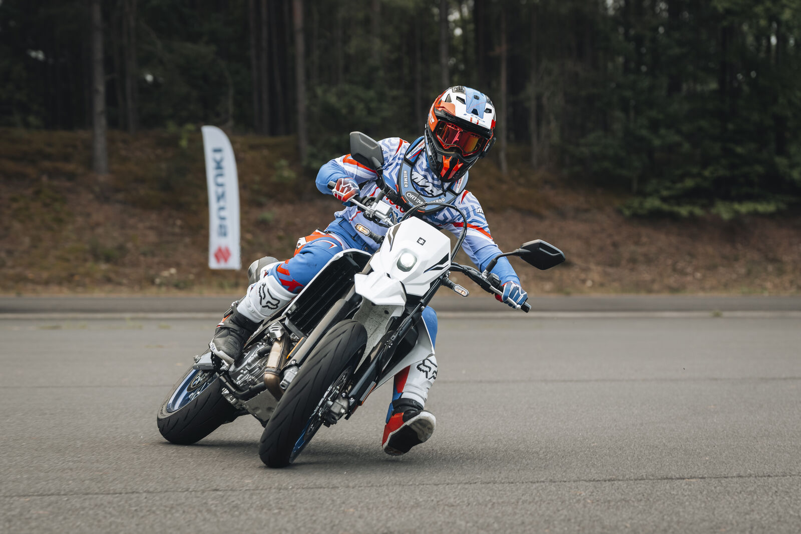 Supermoto eignet sich für A2-Fahrer, Umsteiger von Naked- und Sportbikes, technikorientierte Hobbysportler und alle, die ihr Motorrad wirklich aktiv fahren wollen. Die Kombination aus leichtem Motorrad, ehrlicher Rückmeldung und strukturiertem Training sorgt für eine Lernkurve, die sofort spürbar ist. Die Suzuki DR-Z4SM ergänzt das Training perfekt: präzise, agil, zuverlässig und mit echtem Supermoto-Feeling dank ABS-Off hinten. Wer Kurvenfahren verbessern, sicherer werden oder einfach ein neues Fahrgefühl erleben möchte, findet hier den idealen Einstieg.