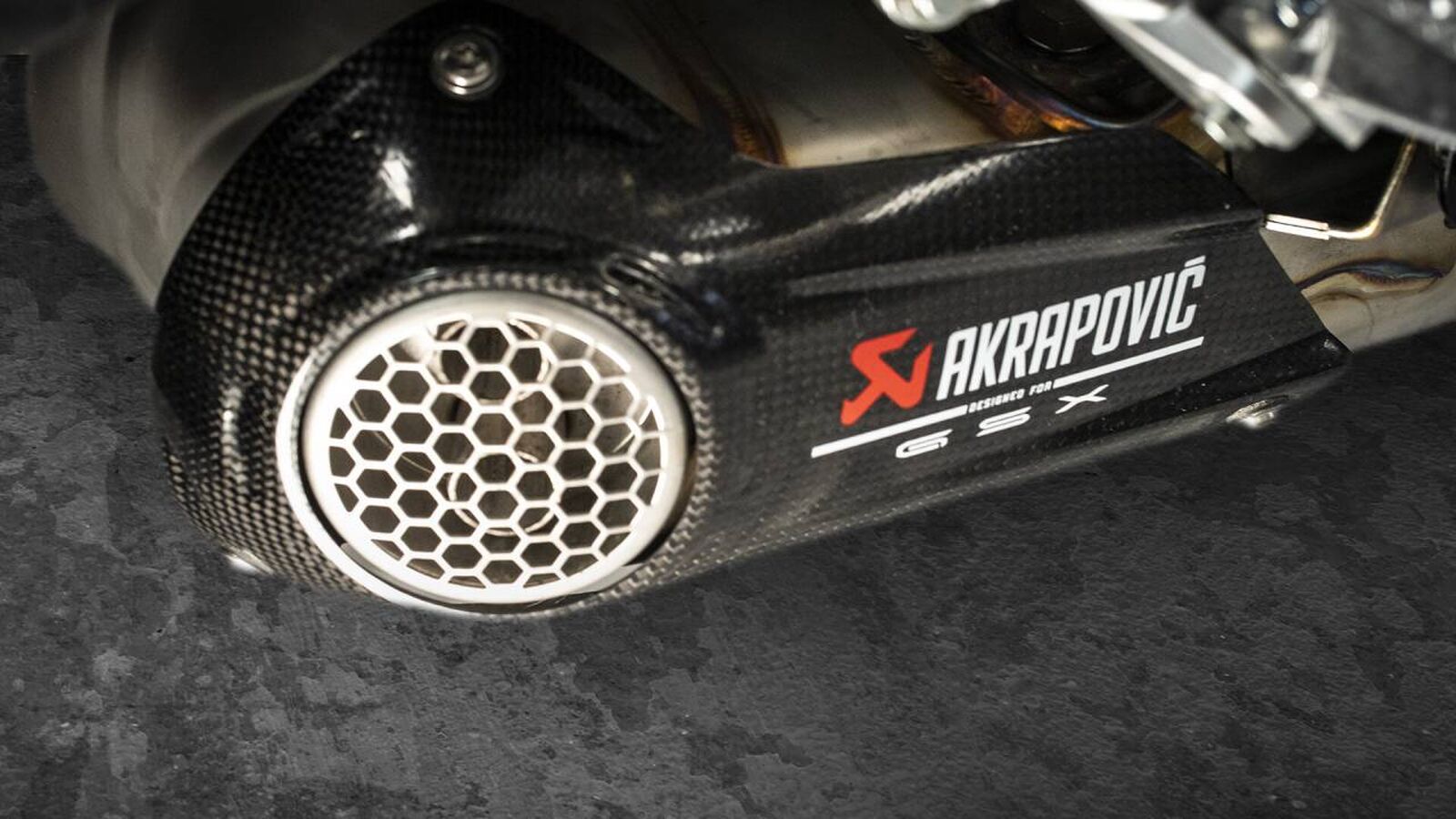 Hier neben mir stehen schon die ersten zwei Sondermodelle auf Basis der 8S. Verbaut ist ein preisgekrönter Parallel-Zweizylinder, der wirklich viel Fahrspaß macht, egal ob offen oder A2-gedrosselt. Vielleicht noch ein kurzer Rant zum A2-Thema: Der Motor hat im unteren Drehzahlbereich keine klassische Drossel, also keine Einschränkung, sondern oben raus wird einfach die Leistung reduziert. Hier stehen aber zwei offene Versionen inklusive dem neuen Akrapovic, der hier serienmäßig mit verbaut ist. Wichtig: Jeweils zehn Stück verfügbar, entweder in Rot oder Blau als Flash-Version – ihr könnt entscheiden. Einige Features sind dazugekommen, aber ich möchte direkt zum Highlight kommen: dem Akrapovic. Letztes Jahr war der noch nicht verfügbar, jetzt schon. Eckdaten: angeblich 2,5 PS mehr Leistung, 2,2 Kilo leichter als der originale Auspuff und rund 1,4 Nm mehr Drehmoment bei 5.500 Umdrehungen. Soundcheck konnten wir heute leider keinen machen, holen wir aber dieses Jahr definitiv nach. Optisch ist das Ding auf jeden Fall eine Wucht. Akrapovic als Originalzubehör bringt auch den Vorteil, dass der Auspuff A2-homologiert ist. Das heißt: Auch gedrosselt darf er gefahren werden, trotz Leistungs- und Drehmomentsteigerung. Zusätzlich gibt’s umfangreiche Beklebungen an Rahmen und Verkleidung, Felgensticker, LED-Blinker und eine Soziusabdeckung, die im Preis inkludiert ist. Preislich liegen wir bei 11.490 Euro, entweder in Rot oder Blau.