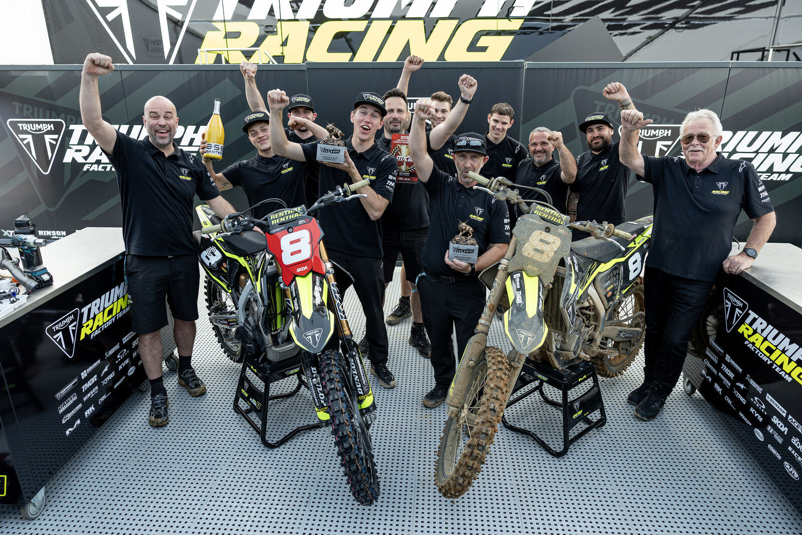 Das Wochenende in Andalusien war ein Beweis für die Stärke des TRIUMPH Factory Racing Teams. Im ersten Lauf dominierte Farres fast die gesamte Renndistanz, bevor ein technisches Problem seinen zweiten Lauf verhinderte. McLellan kämpfte sich hingegen unaufhaltsam voran, zeigte ein hochklassiges Rennen gegen die Spitzengruppe und lieferte ein spektakuläres Sand-Duell mit Teamkollege Farres. Die TRIUMPH-Piloten setzten sich deutlich vom Feld ab und zeigten, dass die TF 250-X nicht nur schnell, sondern auch extrem zuverlässig ist. Auch in der MXGP-Klasse beeindruckte Ben Watson mit Platz acht im ersten Lauf auf der TF 450-X, während Jordon Smith in der AMA Supercross-Serie auf Rang neun fuhr – klare Signale: TRIUMPH baut nicht nur im MX2-Bereich, sondern auch in höheren Klassen eine beeindruckende Performance auf.