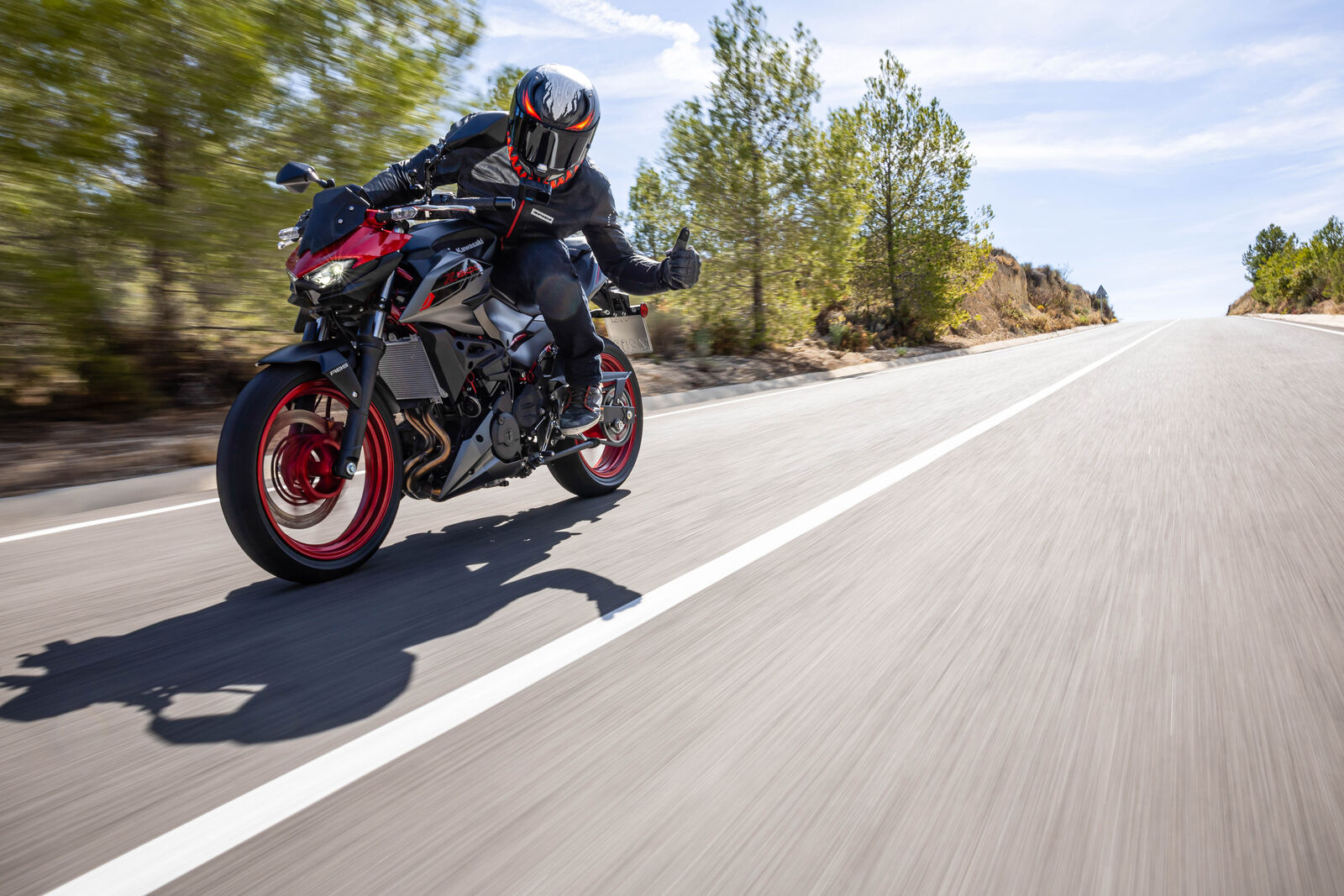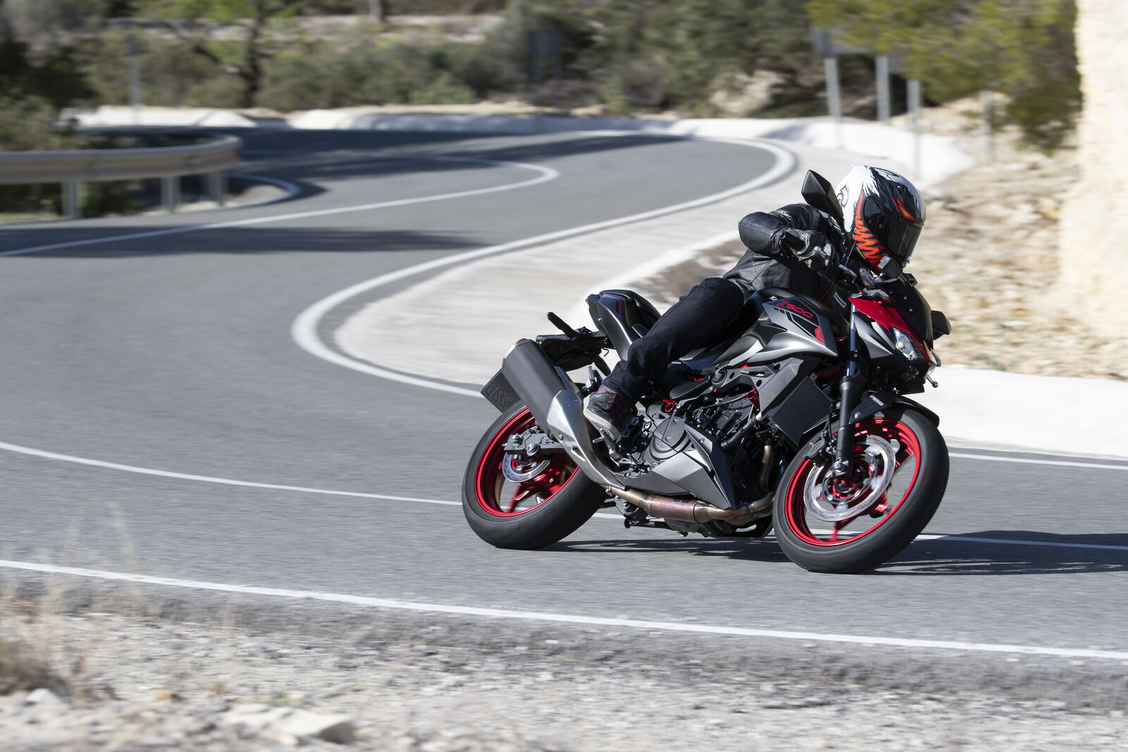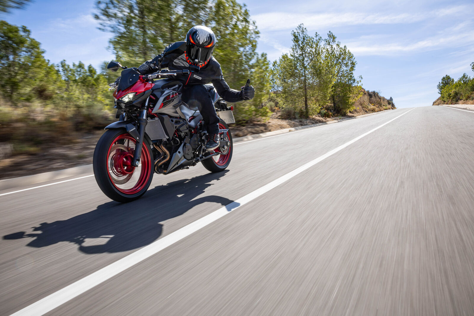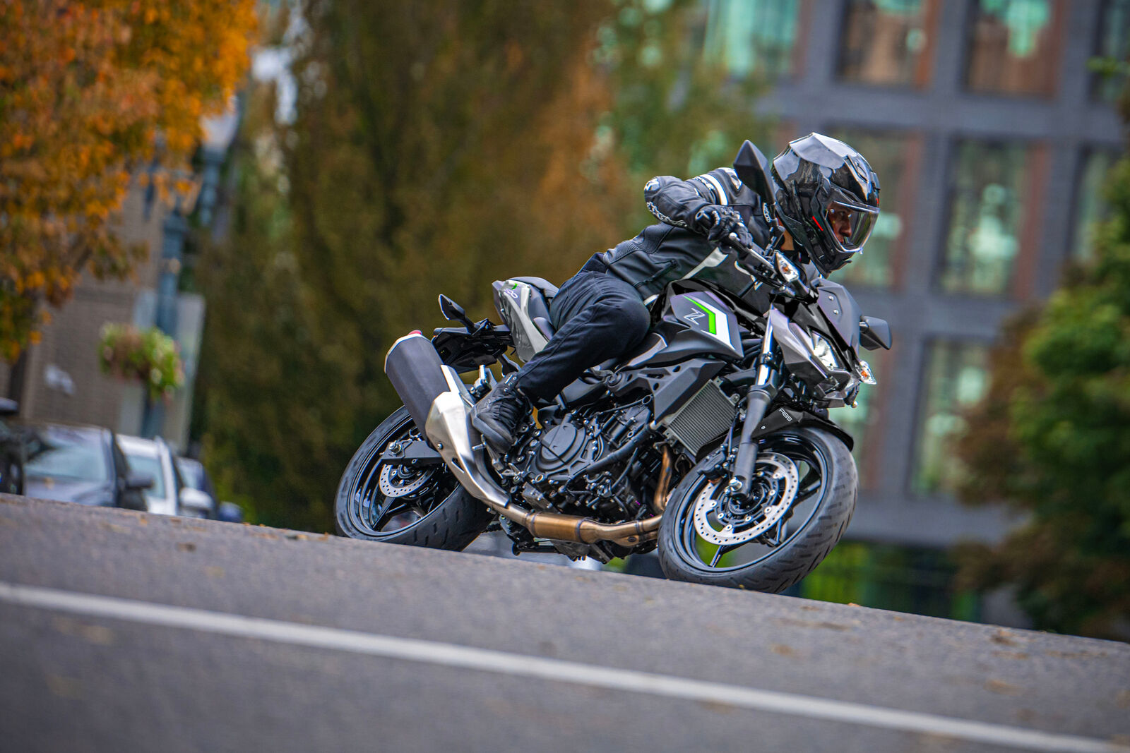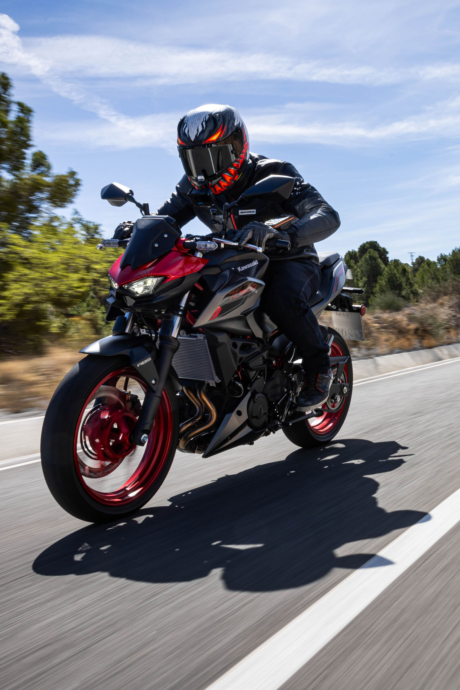 Ein Bike zu fahren, das sich so spielerisch und agil anfühlt, ist eine wahre Freude. Die Z500 meistert jede Alltagssituation mit Bravour und ist auch für längere Touren bestens gerüstet. Dank des perfekt abgestimmten Fahrwerks, welches sogar ohne Upside-Down Gabel auskommt, bietet sie ein Fahrgefühl, das seinesgleichen sucht. Für die Feinabstimmung lässt sich das Federbein in fünf Stufen einstellen. Wer also an diesem Fahrwerk etwas auszusetzen hat, dem kann ich nur schwer folgen. Und wenn wir schon bei der Ergonomie sind: Die Z500 bietet auch größeren Fahrern eine angenehme Sitzposition, während die niedrige Sitzhöhe und der schmale Schrittbogen für eine hervorragende Zugänglichkeit sorgen.