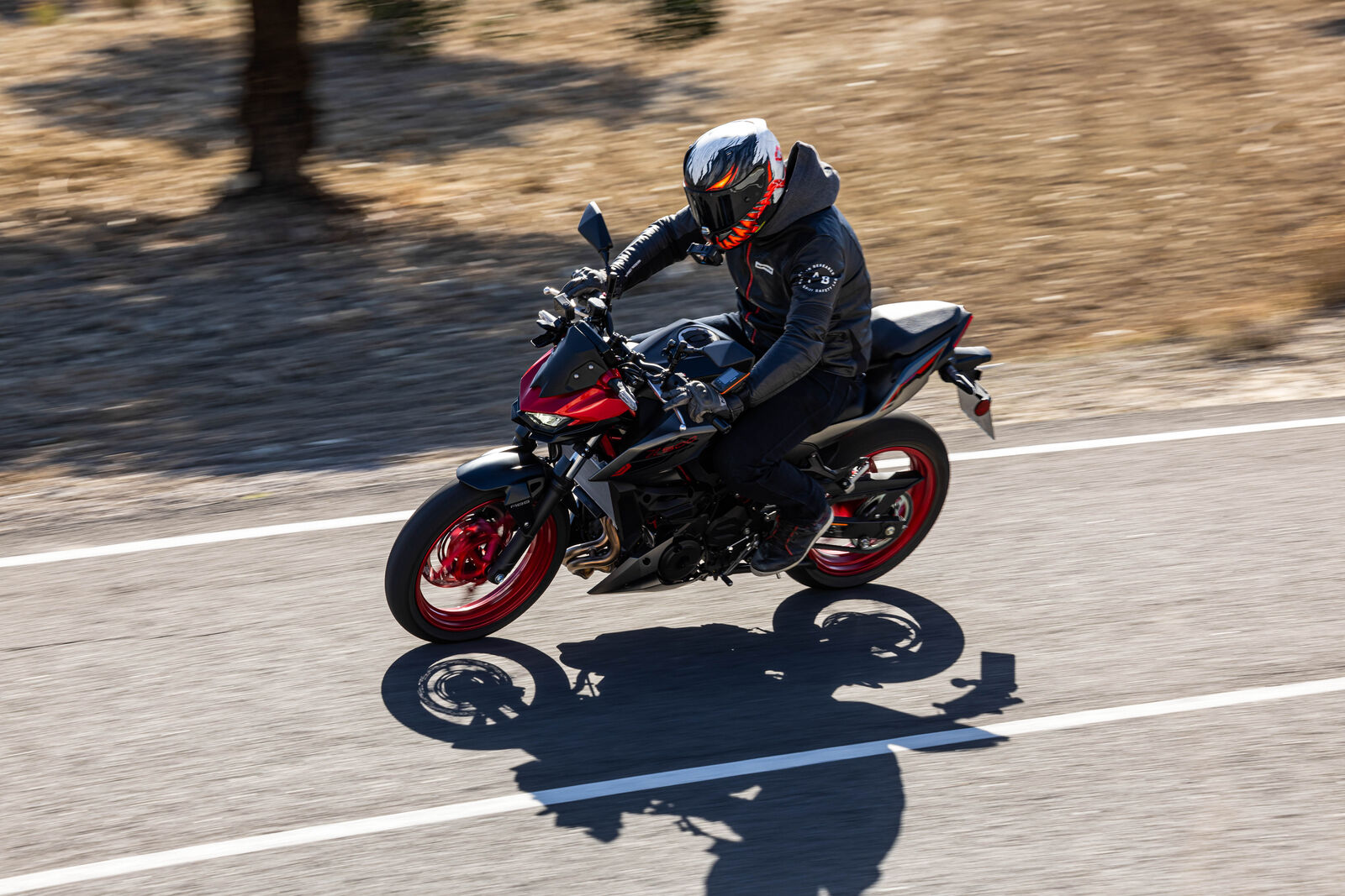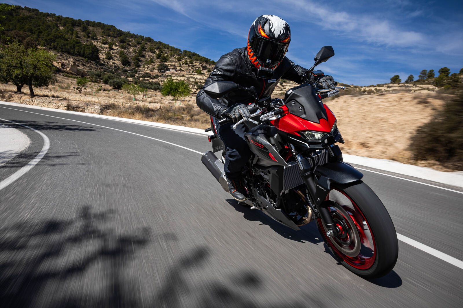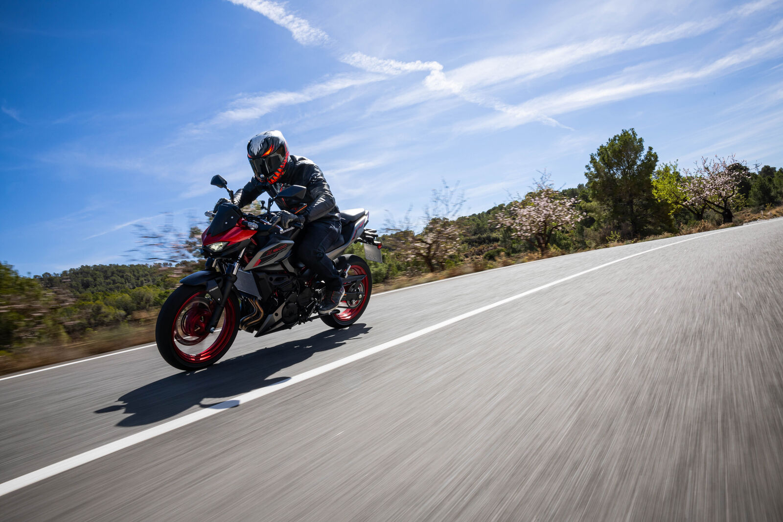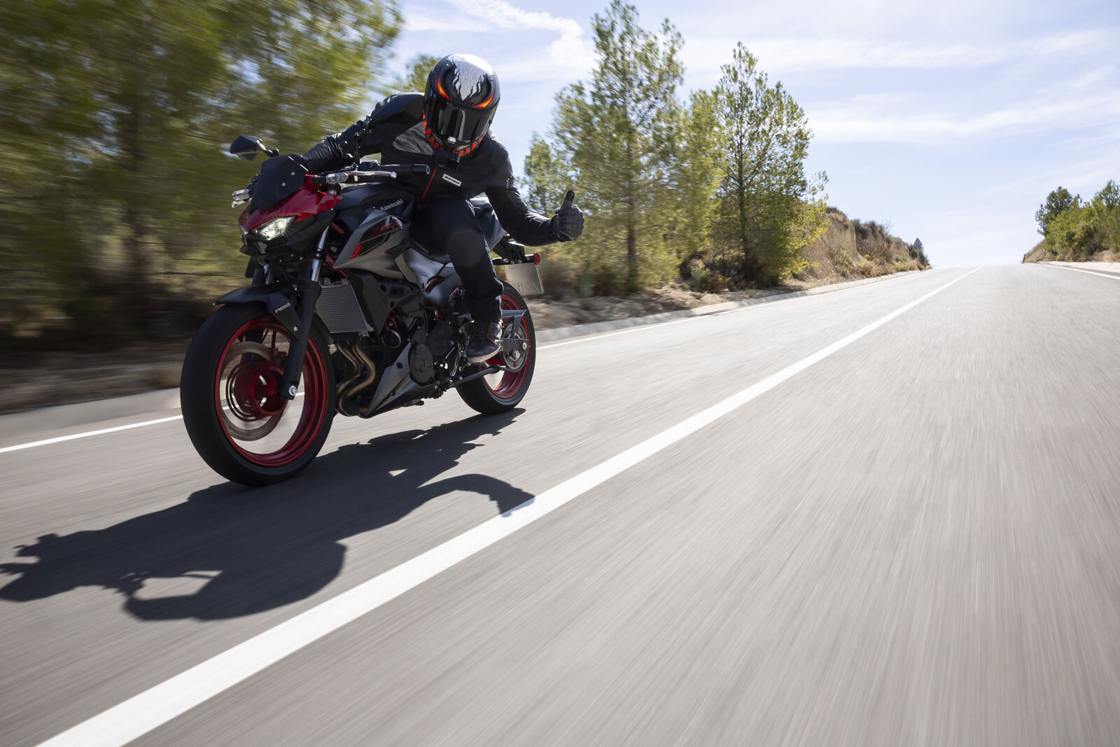 Ein Bike zu fahren, das sich so spielerisch und agil anfühlt, ist eine wahre Freude. Die Z500 meistert jede Alltagssituation mit Bravour und ist auch für längere Touren bestens gerüstet. Dank des perfekt abgestimmten Fahrwerks, welches sogar ohne Upside-Down Gabel auskommt, bietet sie ein Fahrgefühl, das seinesgleichen sucht. Für die Feinabstimmung lässt sich das Federbein in fünf Stufen einstellen. Wer also an diesem Fahrwerk etwas auszusetzen hat, dem kann ich nur schwer folgen. Und wenn wir schon bei der Ergonomie sind: Die Z500 bietet auch größeren Fahrern eine angenehme Sitzposition, während die niedrige Sitzhöhe und der schmale Schrittbogen für eine hervorragende Zugänglichkeit sorgen.