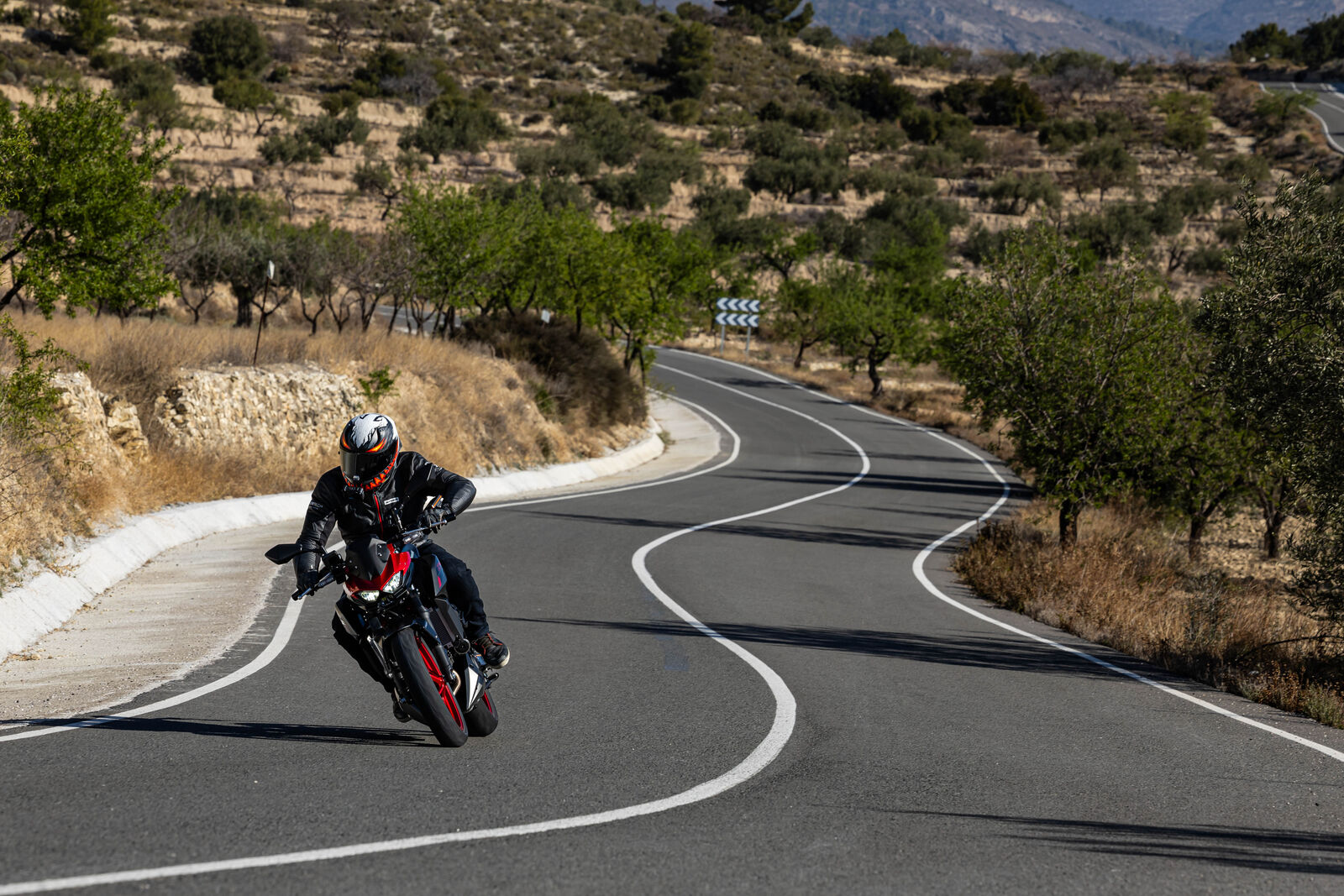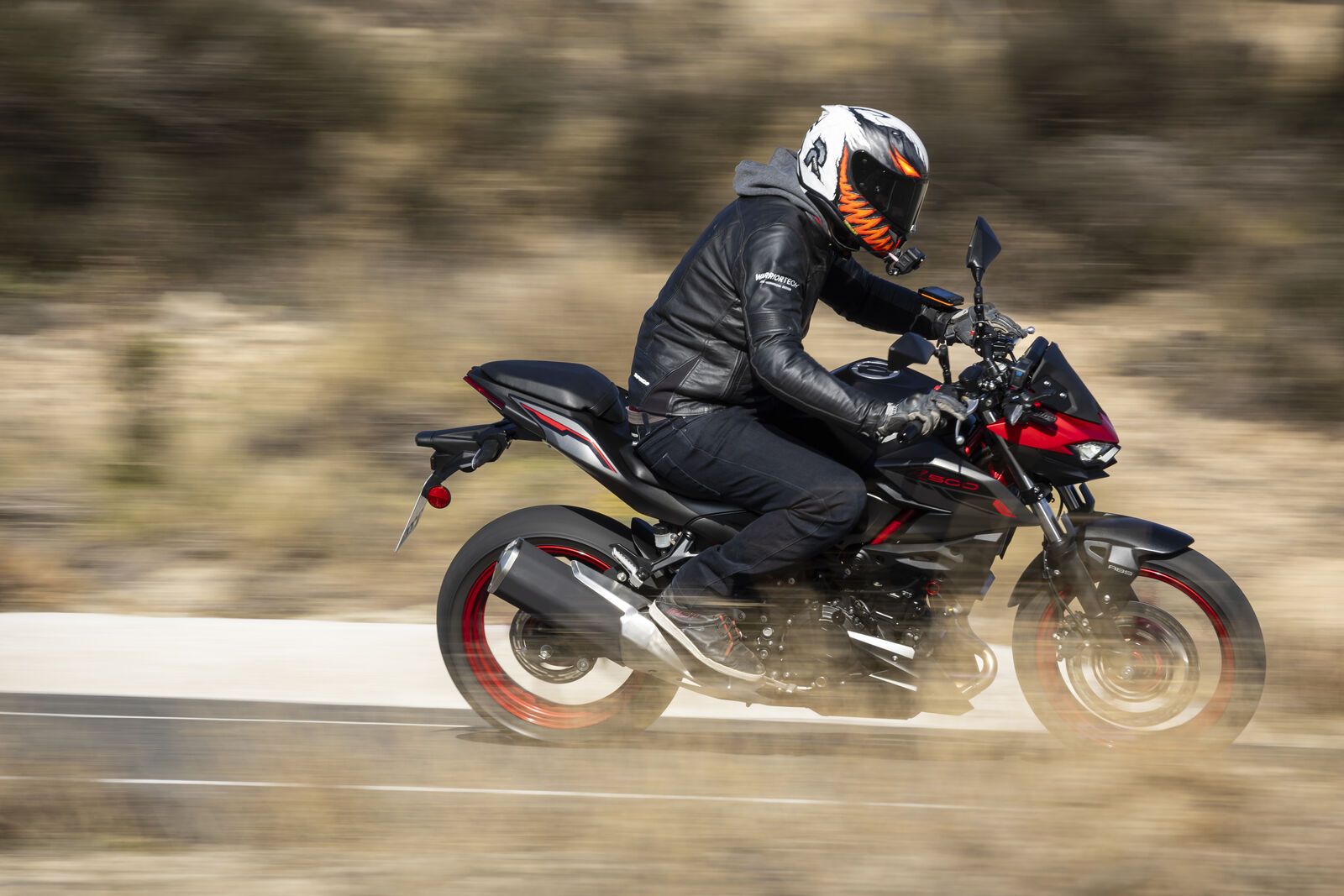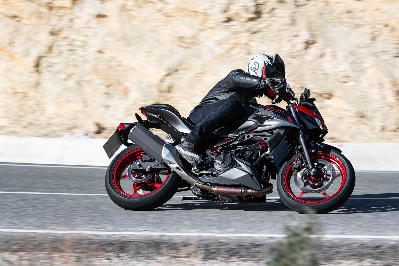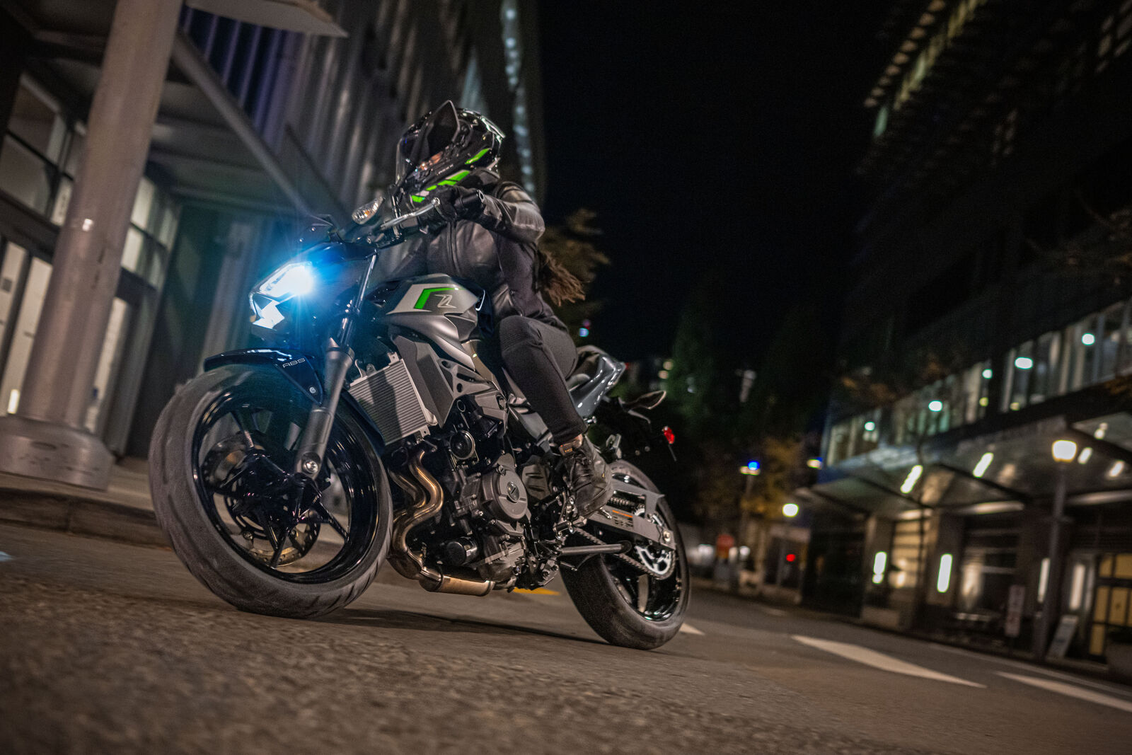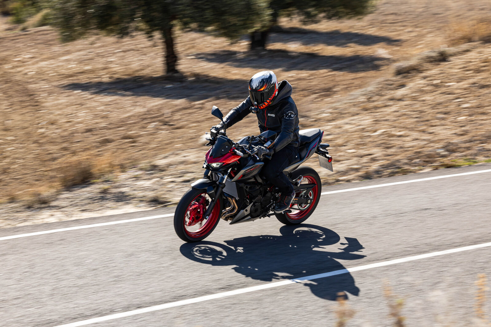 Ein Bike zu fahren, das sich so spielerisch und agil anfühlt, ist eine wahre Freude. Die Z500 meistert jede Alltagssituation mit Bravour und ist auch für längere Touren bestens gerüstet. Dank des perfekt abgestimmten Fahrwerks, welches sogar ohne Upside-Down Gabel auskommt, bietet sie ein Fahrgefühl, das seinesgleichen sucht. Für die Feinabstimmung lässt sich das Federbein in fünf Stufen einstellen. Wer also an diesem Fahrwerk etwas auszusetzen hat, dem kann ich nur schwer folgen. Und wenn wir schon bei der Ergonomie sind: Die Z500 bietet auch größeren Fahrern eine angenehme Sitzposition, während die niedrige Sitzhöhe und der schmale Schrittbogen für eine hervorragende Zugänglichkeit sorgen.