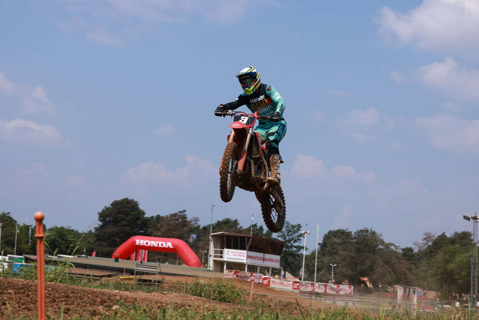 Der Aluminiumrahmen der neuen CRF 250 und 450 hat eine umfassende Überarbeitung erfahren. Ingenieure aus Japan haben sich intensiv mit der Verbesserung der Dämpfungs- und Montagepunkte beschäftigt, um das Handling der Bikes zu optimieren. Bei meiner Unterhaltung mit einem Ingenieur wurde mir erklärt, dass das Ziel war, ein besseres Kurvenverhalten zu erreichen. Und ich kann bestätigen, dass die Hondas in den Kurven absolut stabil sind, ohne das gefürchtete Kippverhalten, das bei vielen anderen Bikes vorkommen kann. Das sagt sogar MXGP-Fahrer Valentin Goulon, der die Bikes direkt mit dem 24er Modell verglichen hat.
