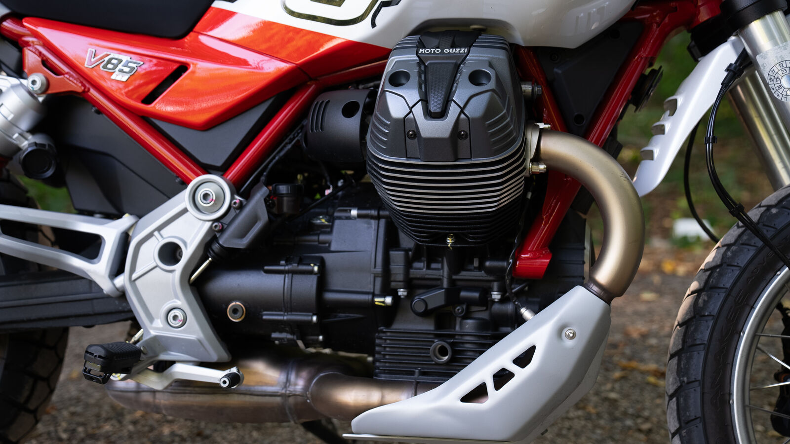 Der Herzschlag der Moto Guzzi V 85 TT ist ein luftgekühlter V2-Motor mit 853 Kubikzentimetern, der 80 PS bei 7750 Umdrehungen und ein Drehmoment von 83 Newtonmetern bei 5100 Umdrehungen liefert. Die bedeutendste Neuerung ist die variable Ventilsteuerung, die es ermöglicht, die Leistung aus dem Motor optimal zu nutzen. Das bedeutet, dass du nicht nur in den oberen Drehzahlen, sondern auch aus den unteren Drehzahlen heraus deutlich mehr Leistung spürst. Das macht die Moto Guzzi spritziger und dynamischer als je zuvor. Wer die letzten Generationen der V 85 kennt, wird die Rückkehr zu mehr Leistung mit Sicherheit begrüßen. Es ist wie ein gutes Steak, das endlich wieder perfekt gegrillt ist – saftig und geschmackvoll.