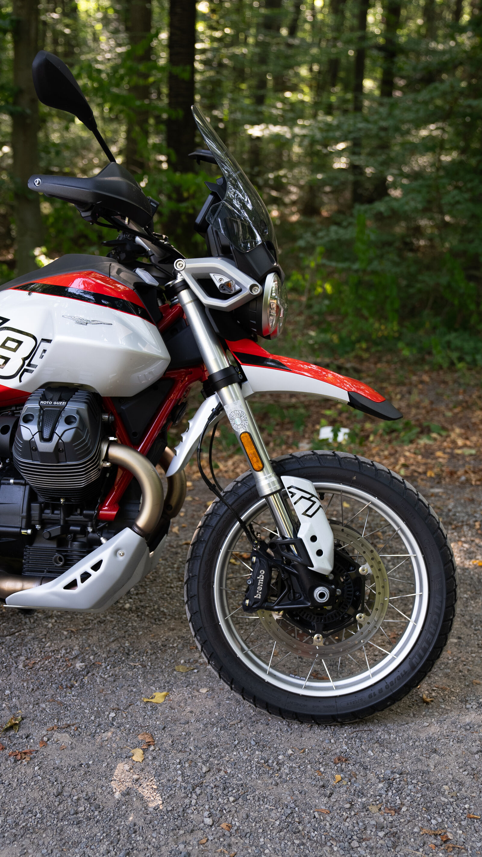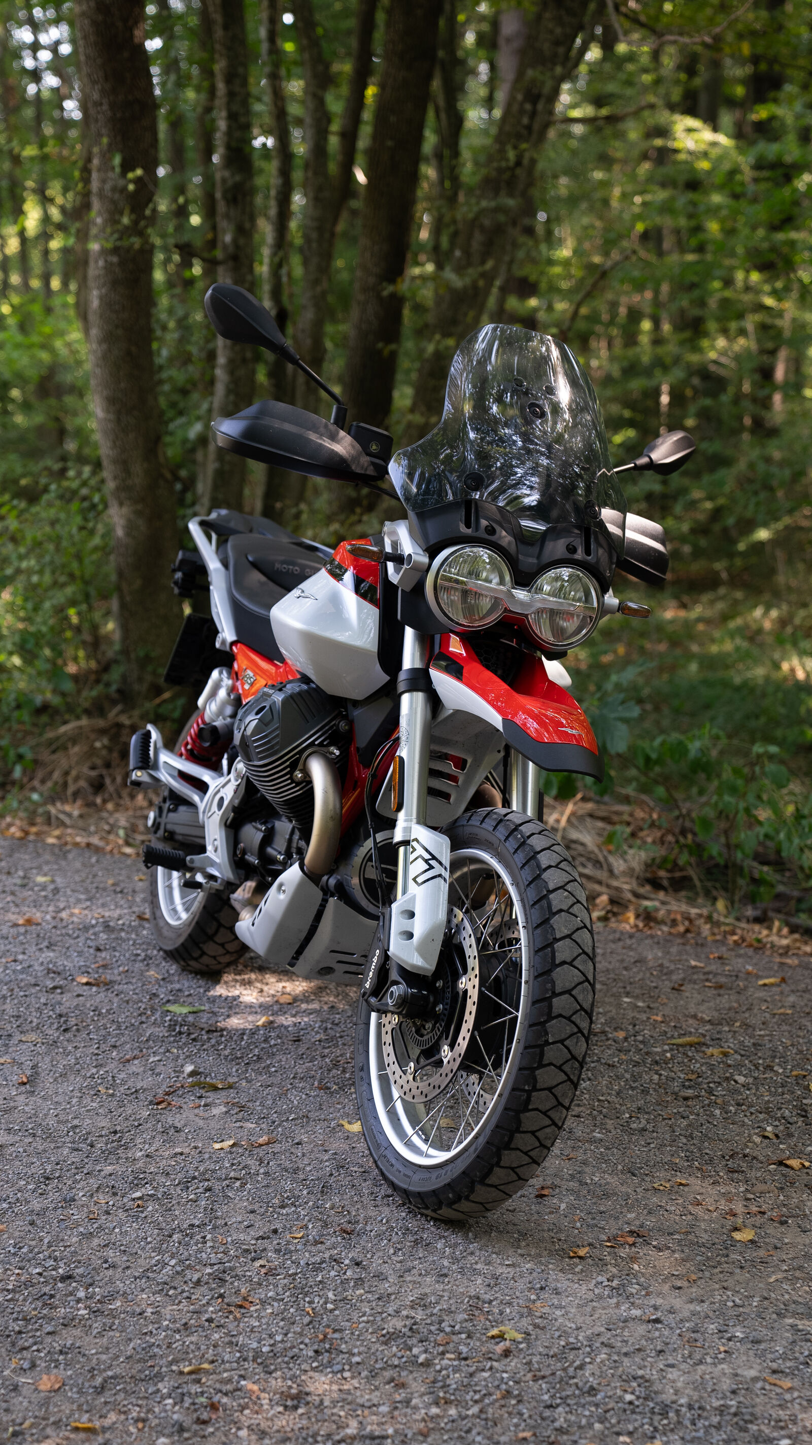 Das Fahrwerk der V 85 TT ist so konzipiert, dass es sowohl auf der Straße als auch abseits der befestigten Wege eine gute Figur macht. Mit einer 41-Millimeter-Upside-Down-Gabel und einem voll einstellbaren Federbein bietet die V 85 TT 170 Millimeter Federweg, was dir sowohl Komfort als auch Kontrolle beim Fahren auf Schotterpisten und Landstraßen gibt. Die 19-Zoll-Räder vorne und 17-Zoll-Räder hinten sorgen dafür, dass die V 85 TT spielerisch durch Kurven gleitet und auch unebene Oberflächen gut meistert. Wenn du also mal auf einen kleinen Schotterweg abbiegen möchtest, brauchst du dir keine Sorgen zu machen – die Moto Guzzi wird dir treu zur Seite stehen, als wäre sie dein bester Freund auf zwei Rädern.