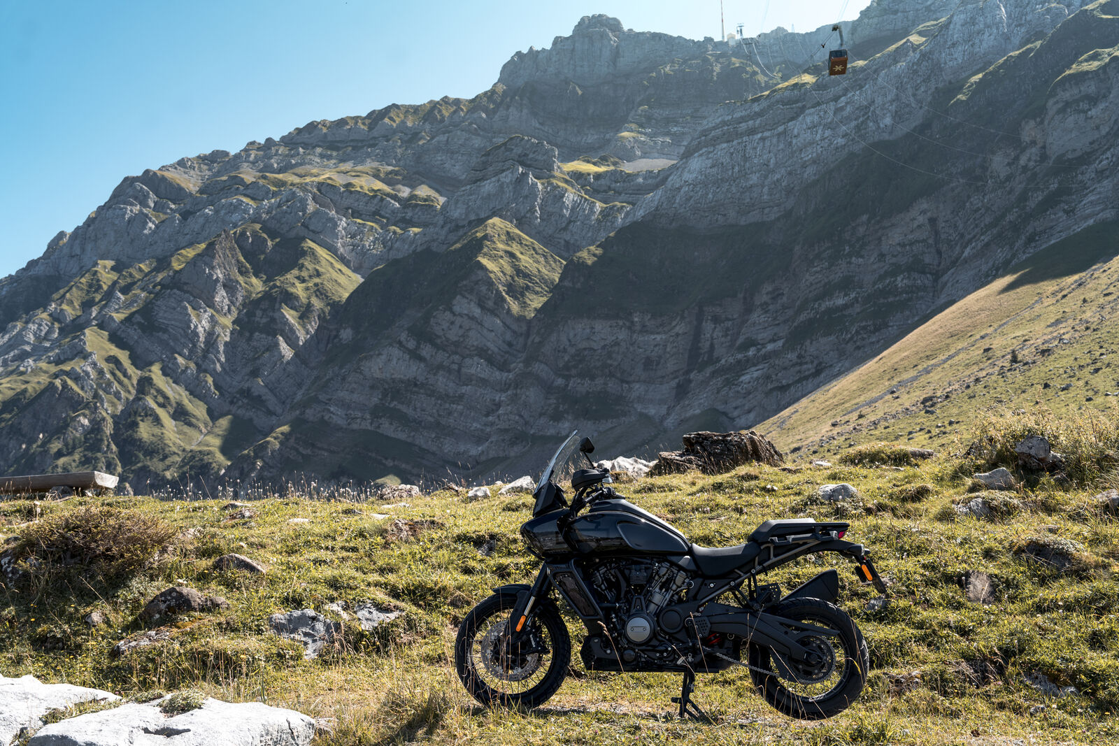 Mit der Harley Davidson Pan America 1250 ging es erstmal von Kärnten nach Zürich. Beim überqueren der Landesgrenze steht schon mal fast der Stift. Hier gilt absolute Vorsicht. Die Geschwindigkeitslimits sind etwas Gewöhnungsbedürftig. 80km/h gilt auf Landstraßen, 120km/h auf Autobahnen. Ein Kunstgriff mit der 152PS starken Pan America. Erstmals erfüllt der Tempomat seine Funktion. Angehalten möchte man auf keinen Fall werden. Der Schweizer Bußgeldkatalog sollte jedem vorab unbedingt bekannt sein! Trotz der Tempobegrenzungen machten die kurvigen Landstraßen und die beeindruckenden Ausblicke die Anreise zu einem Erlebnis, das man selten so intensiv erlebt.
