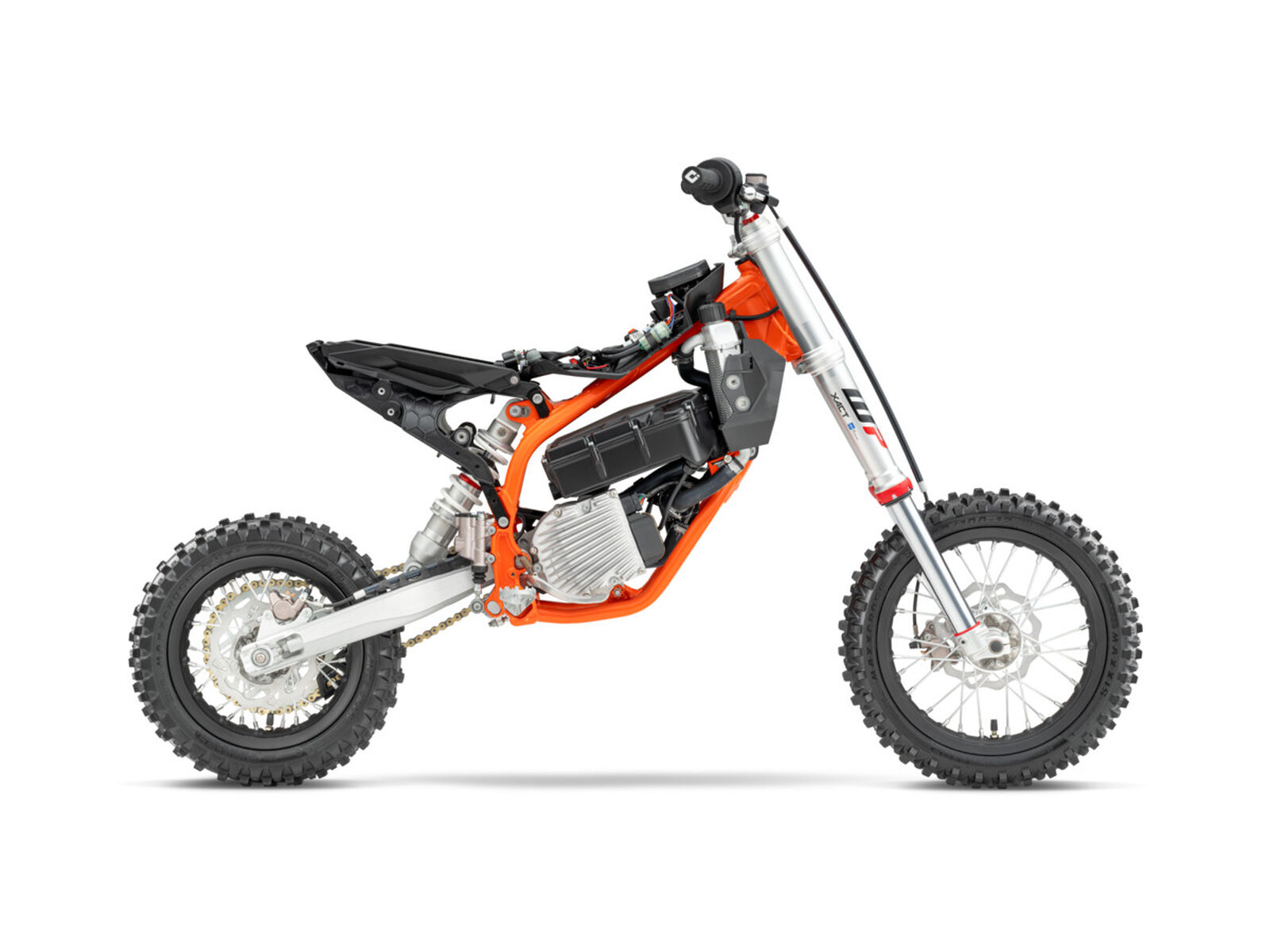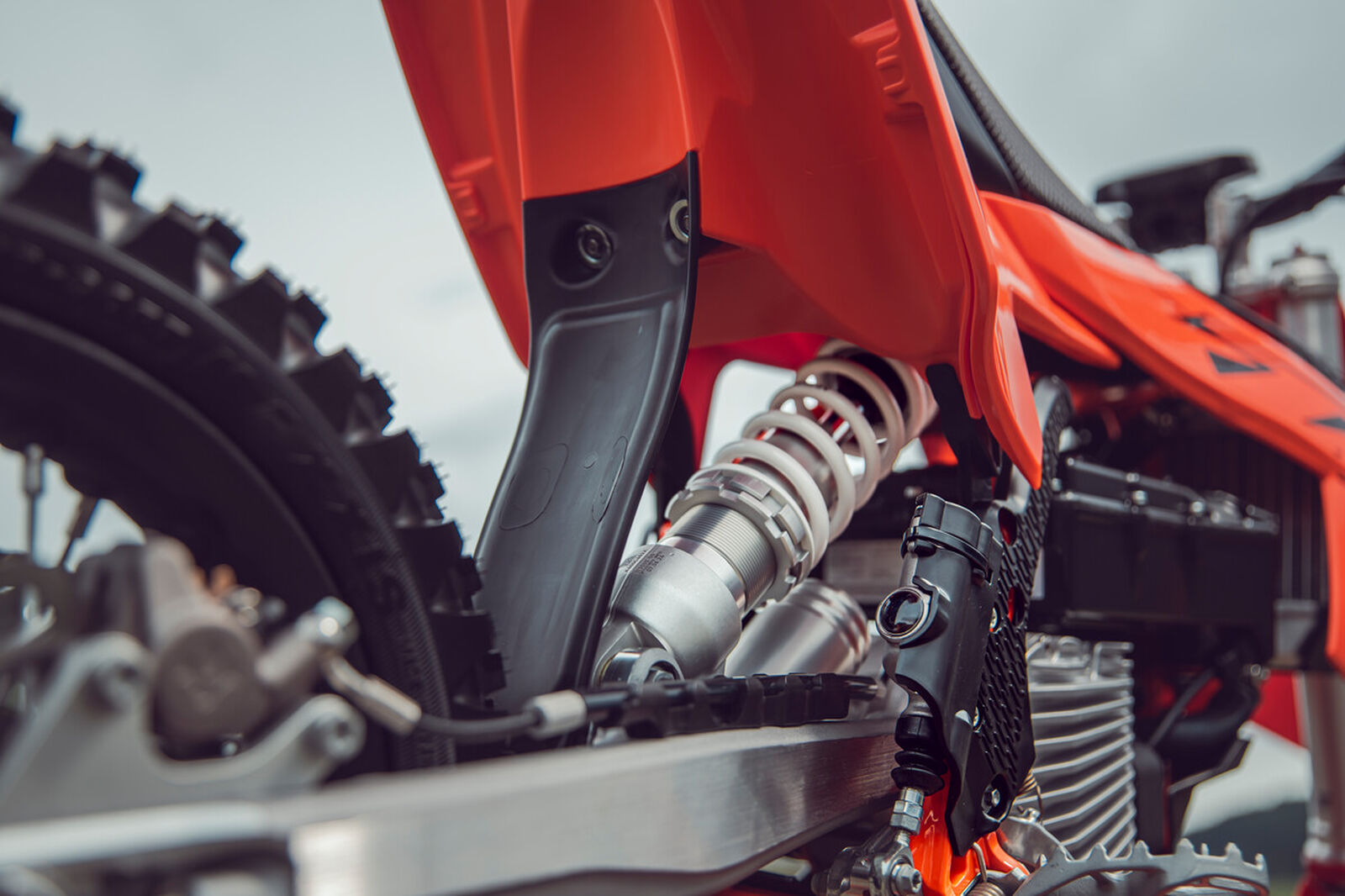Eines der herausragenden Merkmale der KTM SX-E-Modelle ist ihre Anpassungsfähigkeit. Der Ausleger aus leichten, glasfaserverstärkten Kunststoffelementen ermöglicht es, die Motorräder an das Wachstum junger Fahrer anzupassen. Die Sitzhöhe kann flexibel zwischen 634 und 682 mm variiert werden, sodass das Motorrad optimal an die Körpergröße des Fahrers angepasst werden kann. Zudem lassen sich Sitzbank und Bodywork einfach nach oben oder unten verschieben, was zusätzliche Anpassungsoptionen bietet. Eine noch niedrigere Sitzhöhe kann durch Absenken der Gabel und Änderungen an der Federbeinmontage erreicht werden. Der hochfeste Rahmen aus Chrom-Molybdän-Stahl bietet Stabilität und Präzision. Durch neue Modifikationen für das Modell 2025 wird eine verbesserte Robustheit und ein besseres Handling gewährleistet, was zu einem noch sichereren Fahrgefühl führt. Dieses „Go as you Grow“-Prinzip fördert nicht nur das Vertrauen der jungen Fahrer, sondern sorgt auch für eine längere Nutzung des Motorrads über mehrere Jahre hinweg.