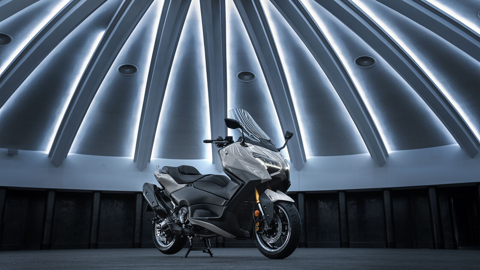 Der Yamaha TMAX ist mit fortschrittlicher Elektronik ausgestattet, die das Fahrerlebnis optimiert. Zu den Neuerungen zählt das Brake Control System (Kurven-ABS), das ursprünglich für Supersport-Motorräder entwickelt wurde. Dieses System reguliert die Bremskraft je nach Geschwindigkeit, Schräglage und Straßenbedingungen und sorgt so für maximalen Grip und Sicherheit bei verschiedenen Witterungsbedingungen. Der D-MODE erlaubt die Anpassung der Leistungsabgabe für unterschiedliche Fahrstile und Umgebungen. Der TMAX Tech MAX bietet zusätzlich ein Reifendrucküberwachungssystem (TPMS) und einen Tempomat, was ihn besonders für längere Fahrten komfortabel macht. Die verbesserte Traktionskontrolle gewährleistet auf rutschigem Untergrund eine optimale Kraftübertragung und bietet Sicherheit bei jeder Straßenlage.