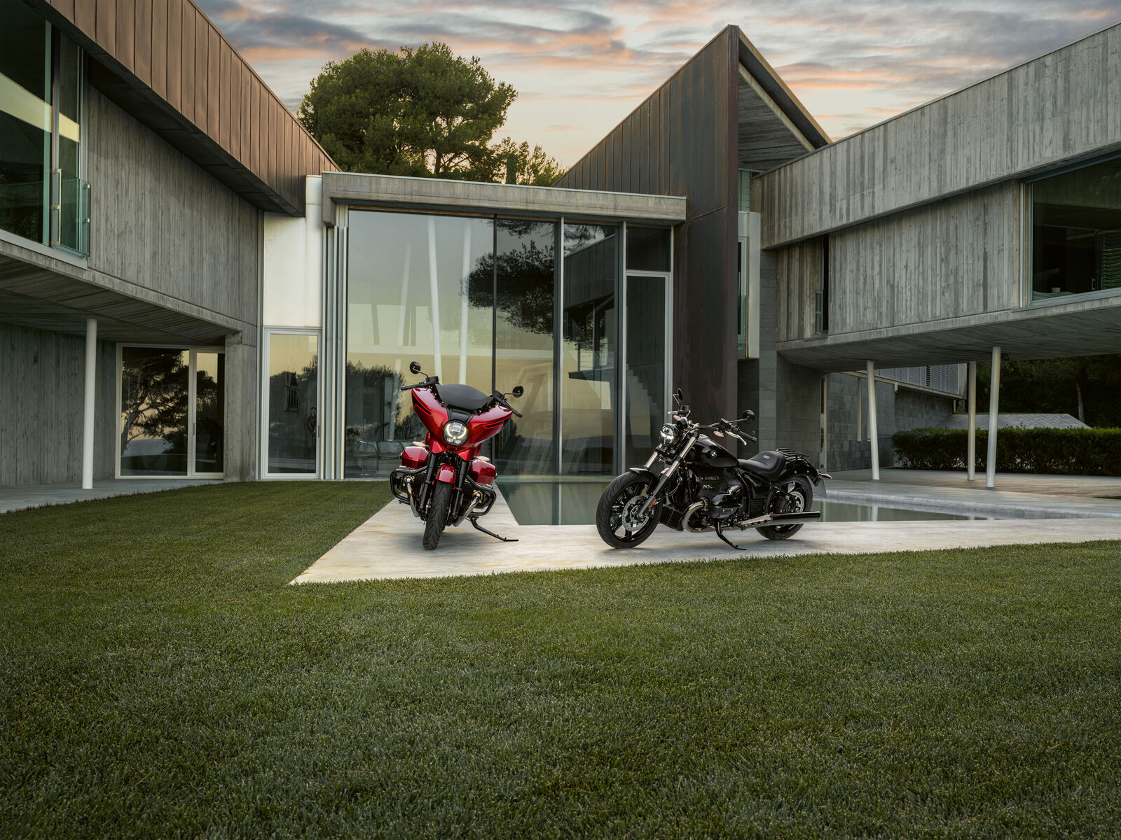 Die überarbeitete BMW R 18 zeigt sich nun moderner und dynamischer mit einem neuen Design, das unter anderem einen größeren 18-Zoll-Hinterradreifen, neu gestaltete Front- und Heckkotflügel sowie eine schärfere Seitenkontur umfasst. Auch die Endschalldämpfer, der Einzelsitz und die Gabelpartie wurden neu designt, während ein neu abgestimmtes Federbein und eine größere Reifenkombination für mehr Fahrkomfort sorgen. Die Basisversion kommt in Blackstorm metallic mit einem silbernen Antriebsstrang und verchromter Abgasanlage, während es zusätzliche Sonderausstattungen wie die Option 719 Olivine oder die R 18 Blacked Out gibt. Die BMW R 18 Classic behält ihren nostalgischen Charakter bei, profitiert jedoch ebenfalls von einem 19-Zoll-Vorderrad, neuen Seitendeckeln und Endschalldämpfern sowie serienmäßigem Tagfahrlicht und einer USB-C-Ladesteckdose. Beide Modelle sind in verschiedenen Farb- und Ausstattungsvarianten erhältlich.