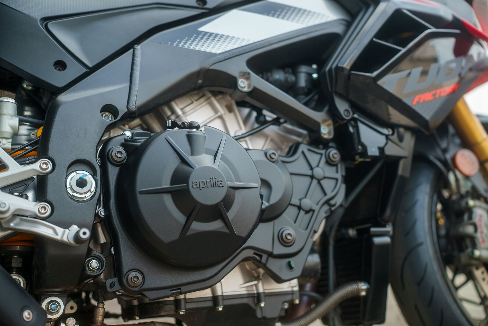 Der Motor der Aprilia Tuono V4 2025 zeigt sich im Stadtverkehr als äußerst leistungsfähig. Bereits bei niedrigen Drehzahlen zieht er sauber und bietet eine geschmeidige Gasannahme. Der Quickshifter sorgt für butterweiche Gangwechsel, auch wenn die etwas schwergängige Kupplung im Stop-and-Go-Verkehr als nachteilig empfunden werden kann.