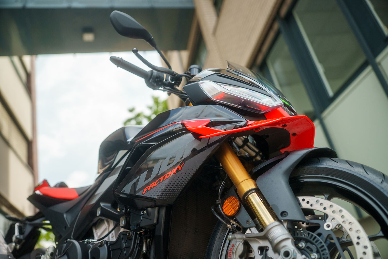 Das Fahrwerk der Aprilia Tuono V4 2025, ausgestattet mit einer Sachs 43mm Upside-Down-Gabel und einem Monostoßdämpfer, bietet außergewöhnlichen Komfort. Es gleicht Unebenheiten der Straße hervorragend aus, was besonders in städtischen Umgebungen von Vorteil ist. Trotz ihres sportlichen Charakters fühlt sich die Tuono in der Stadt fast wie ein komfortables Alltagsmotorrad an.