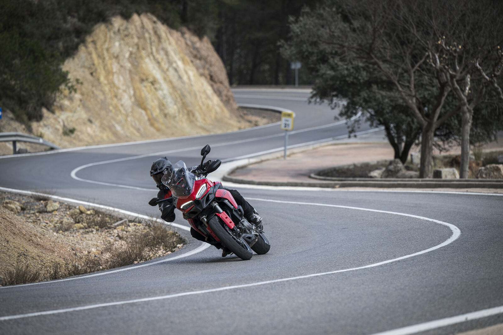 Die Ducati Multistrada V2 2025 ist mit einem Kurven-ABS, einer schräglagenabhängigen Traktionskontrolle, Anti-Wheelie-Control und einem Lenkungsdämpfer ausgestattet. Diese Systeme arbeiten zusammen, um maximale Sicherheit und Stabilität unter verschiedenen Fahrbedingungen zu gewährleisten.