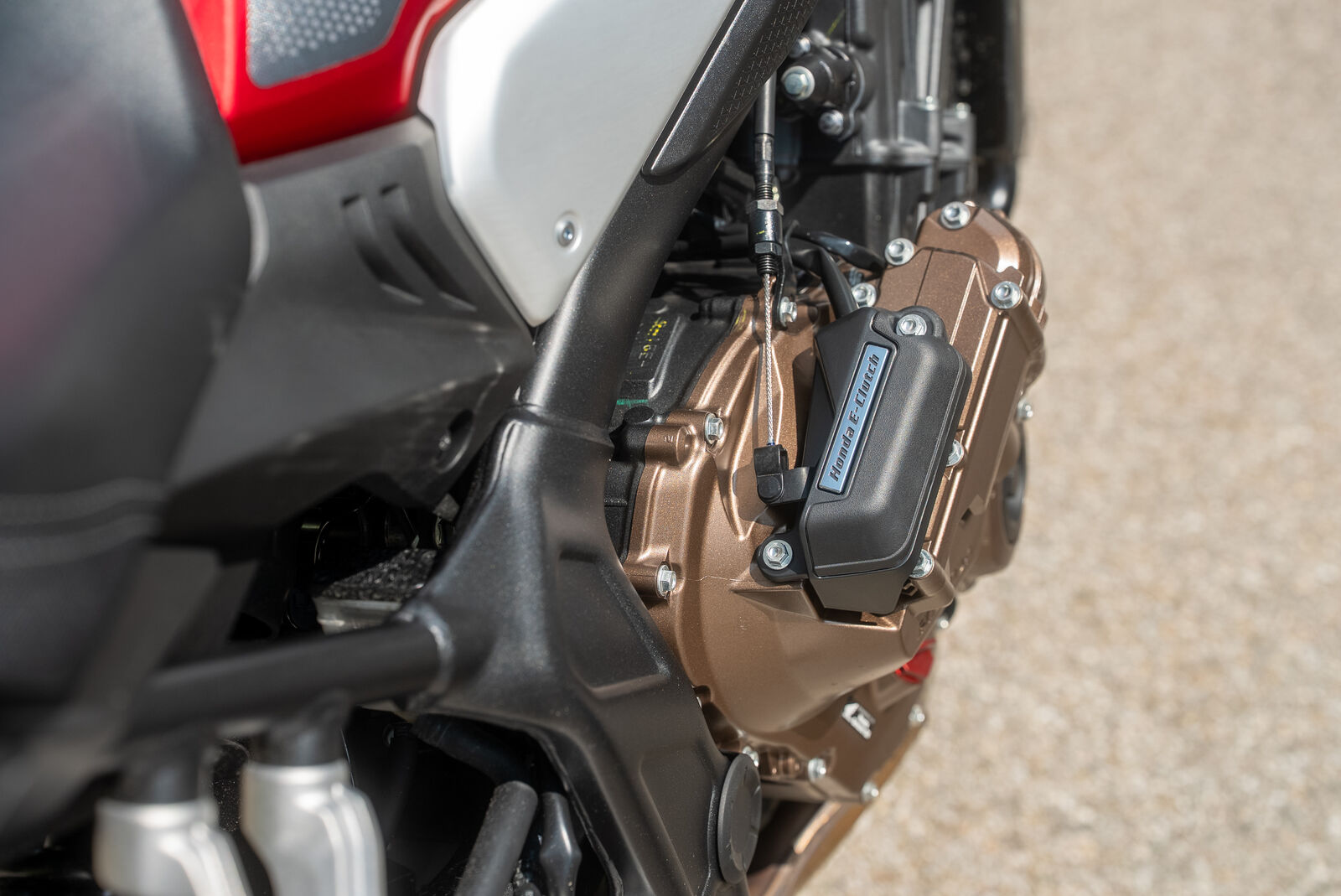 Die E-Kupplung der Honda CB 650 R 2025 ermöglicht ein komfortables Fahren, indem sie das Betätigen des Kupplungshebels überflüssig macht. Diese Technologie funktioniert ähnlich wie ein Quickshifter und ist besonders im Stadtverkehr nützlich, da sie das Fahren vereinfacht und den Fahrspaß erhöht.