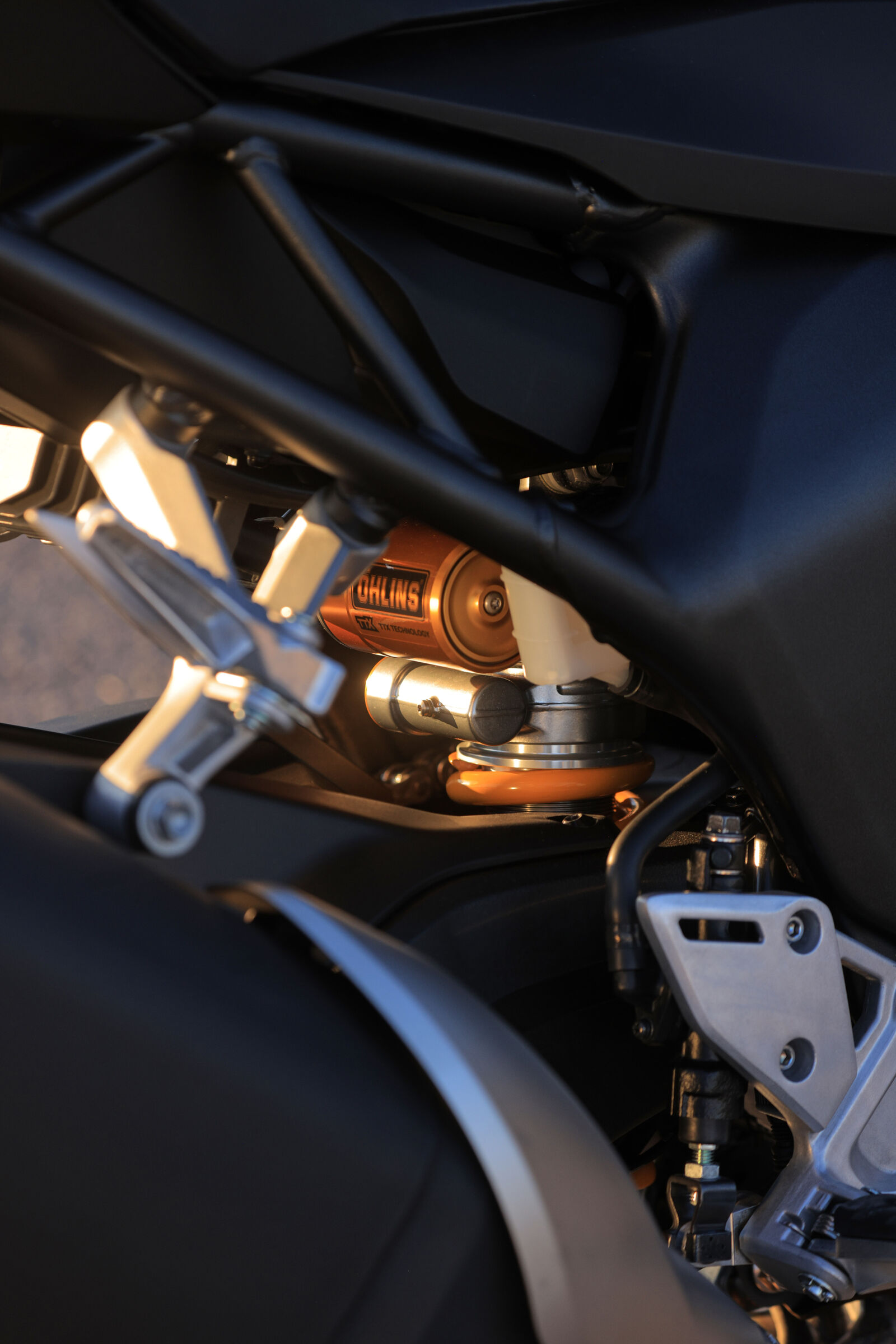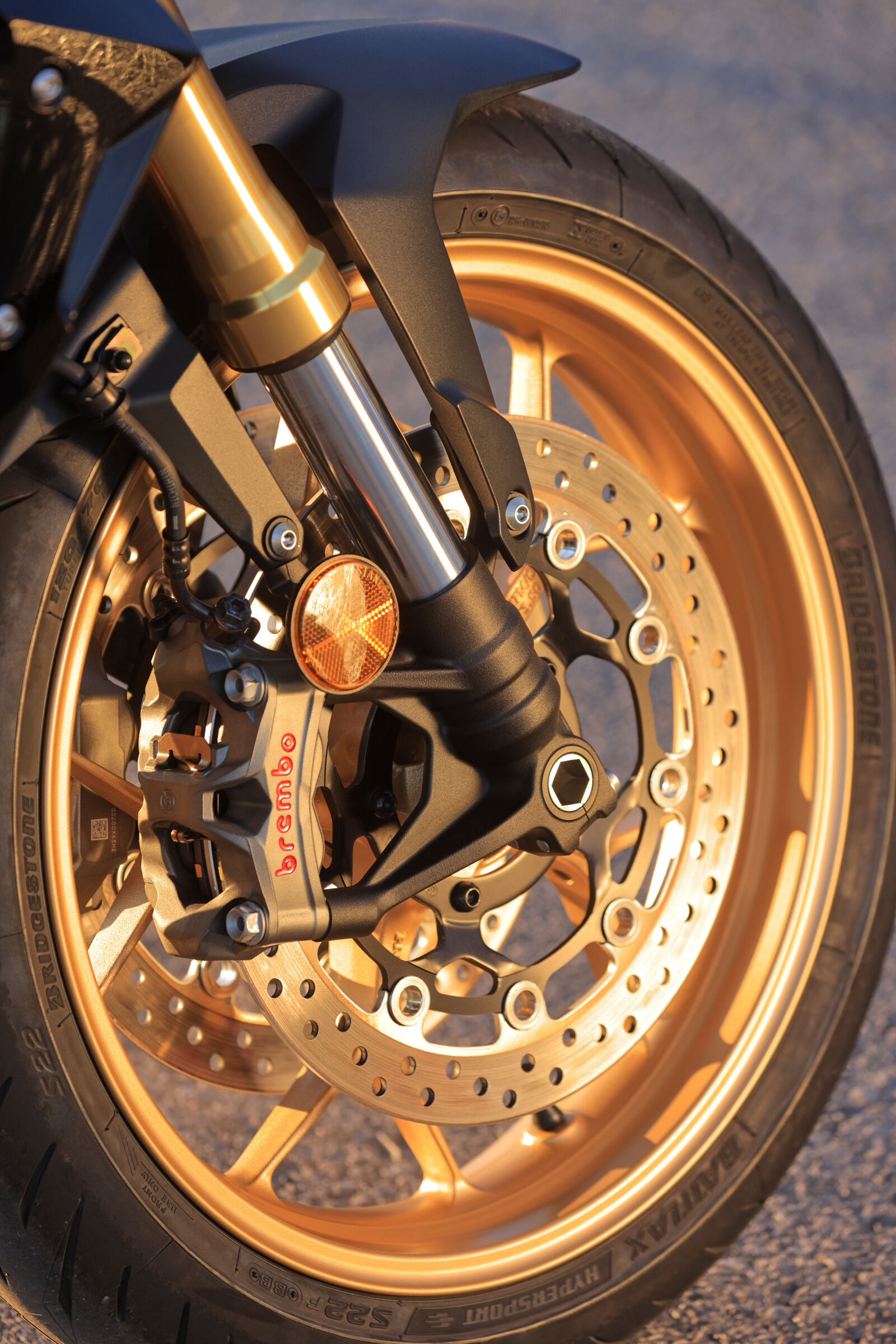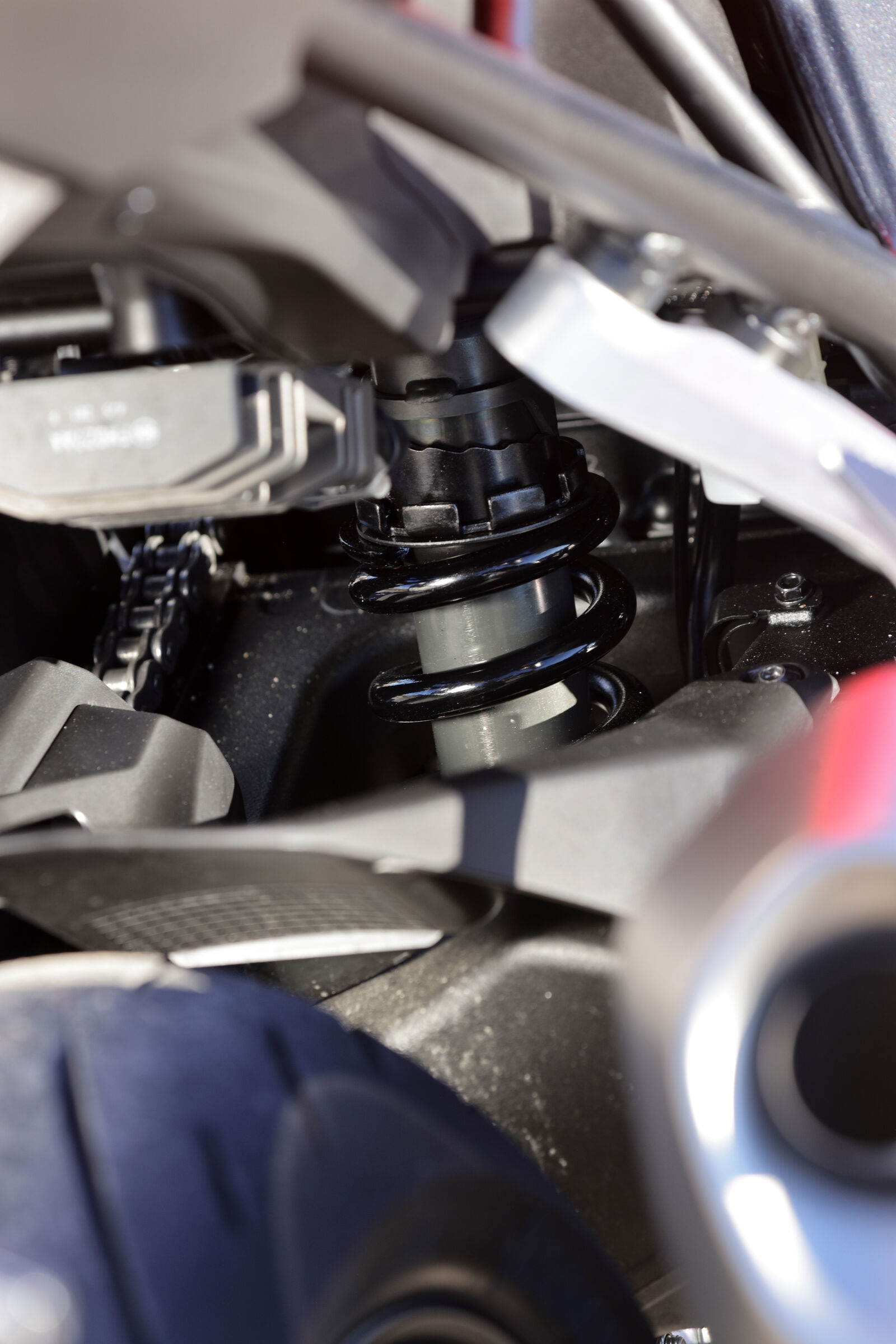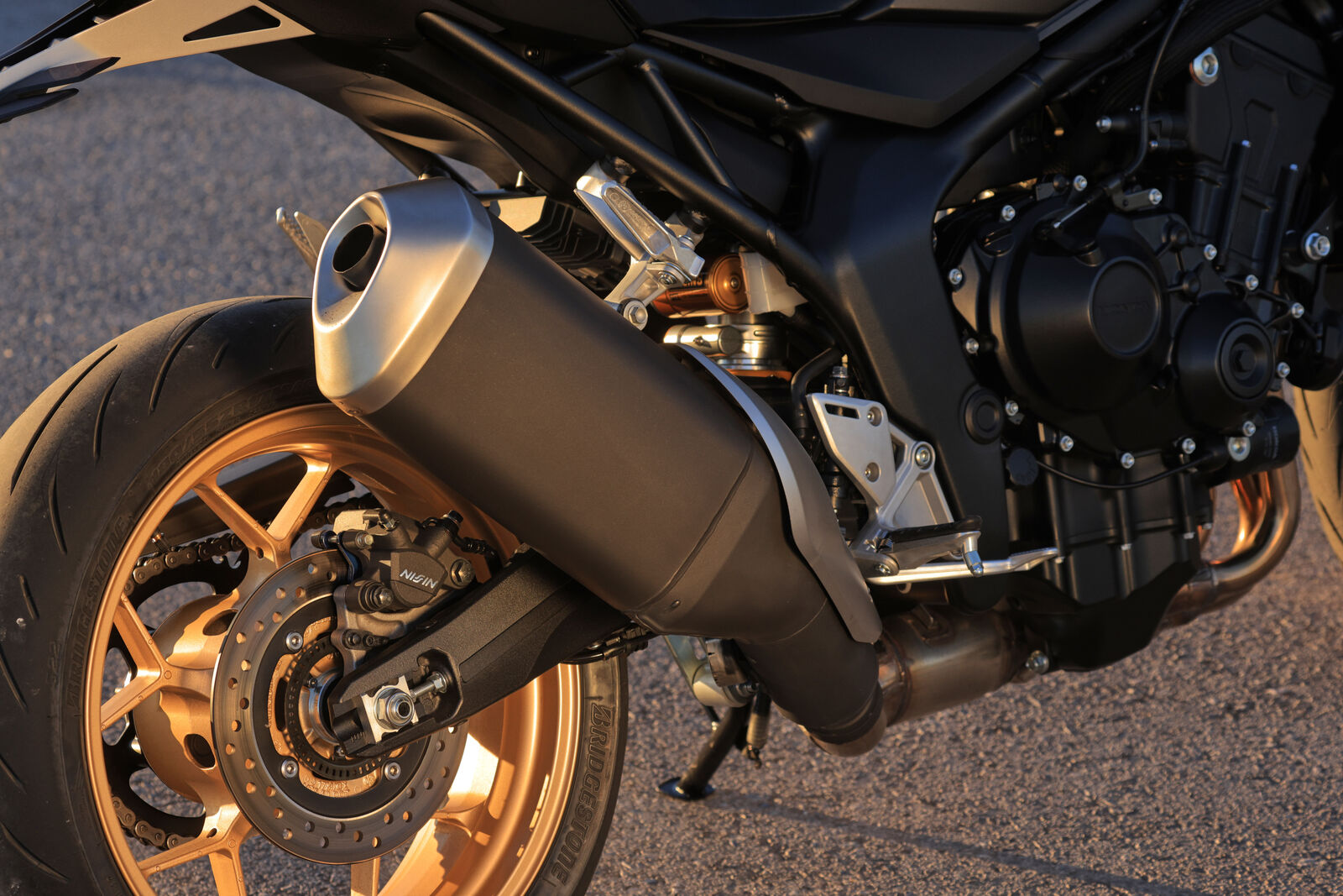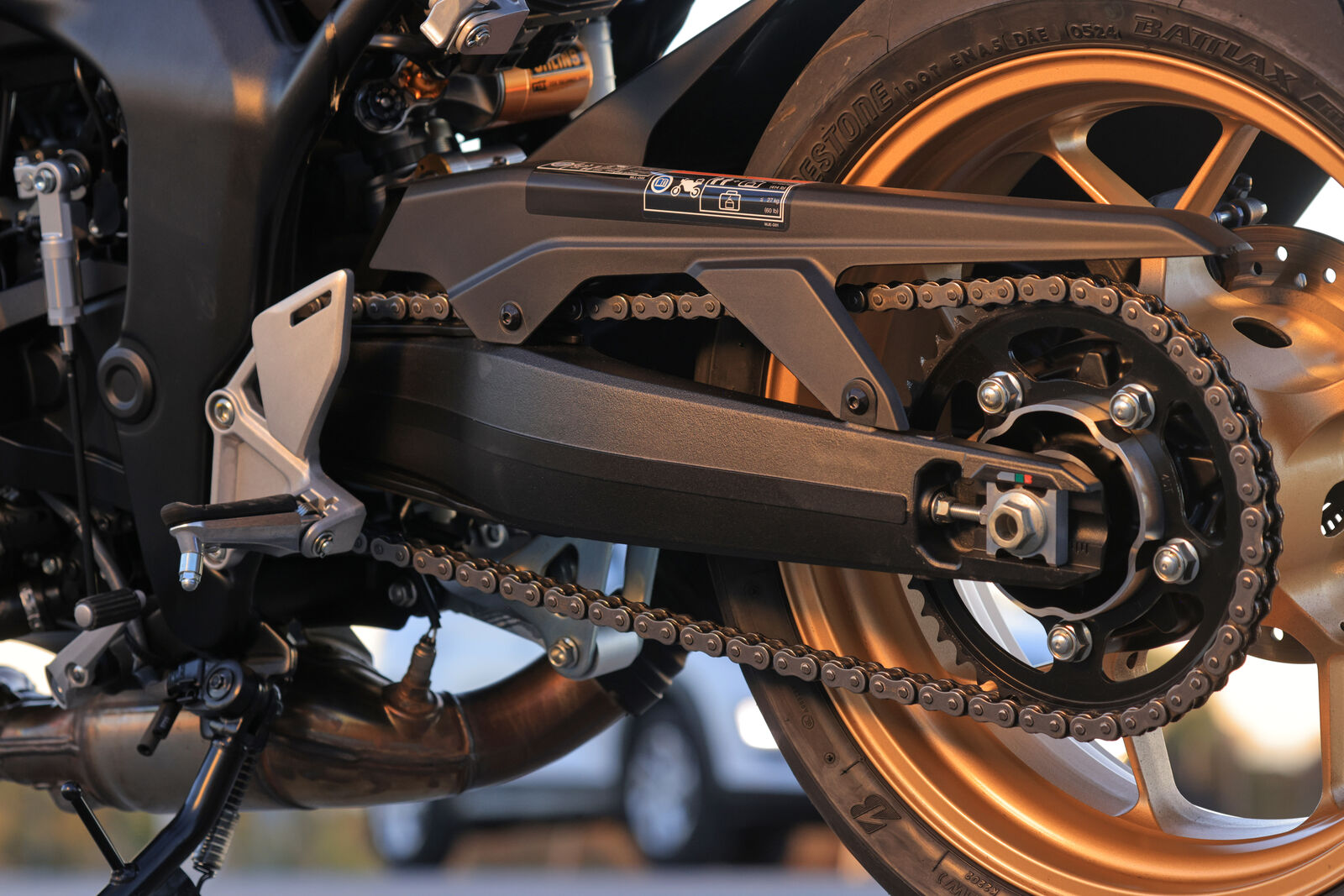 Das Fahrwerk der Honda CB1000 SP Hornet 2025 zeichnet sich durch eine SHOWA 41 mm SFF-BP Upside-Down-Gabel und einen hochwertigen Öhlins TTX 36 Stoßdämpfer aus. Beide Komponenten sind einstellbar und bieten hervorragende Dämpfungseigenschaften, die sich gut an unterschiedliche Fahrbedingungen anpassen lassen.