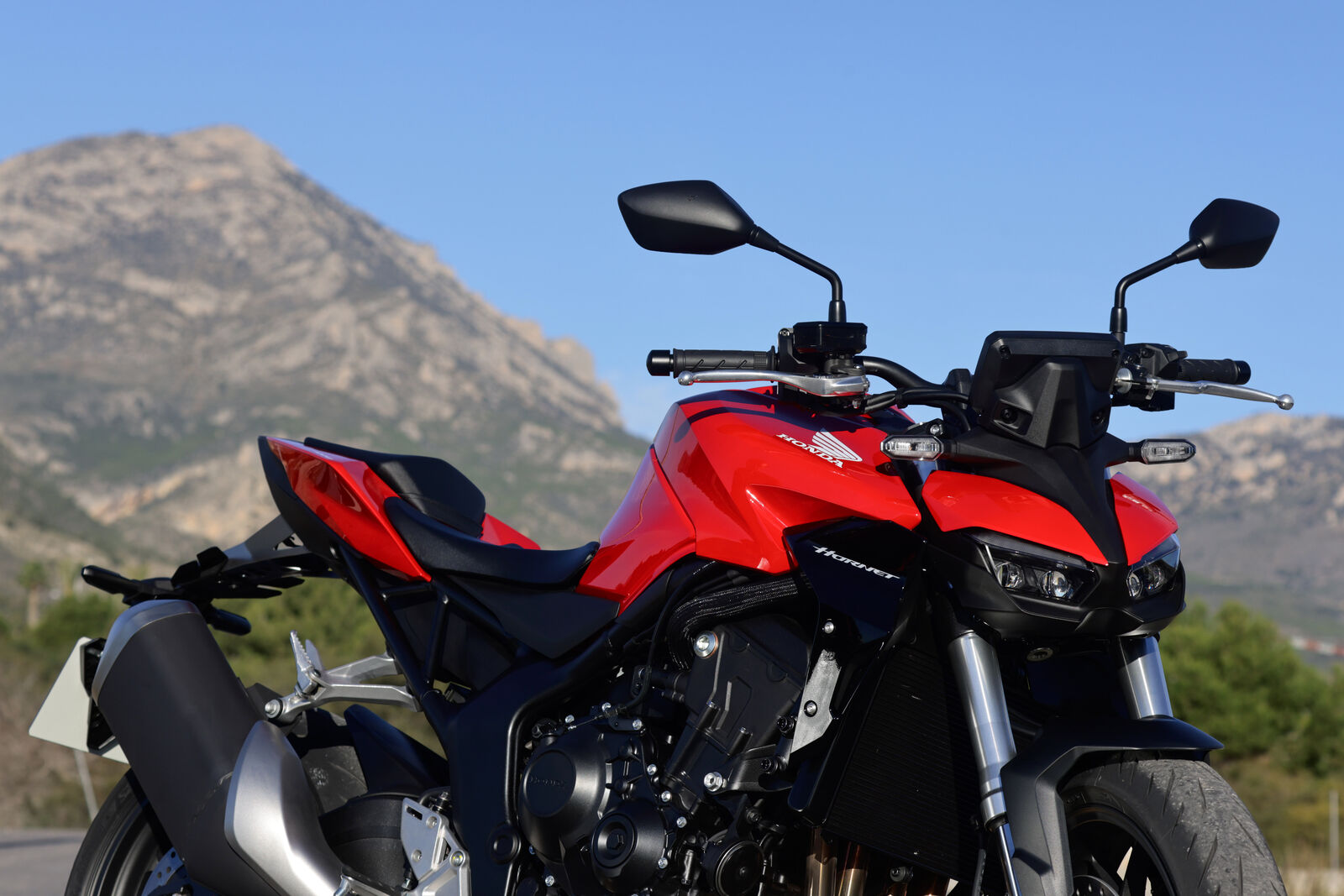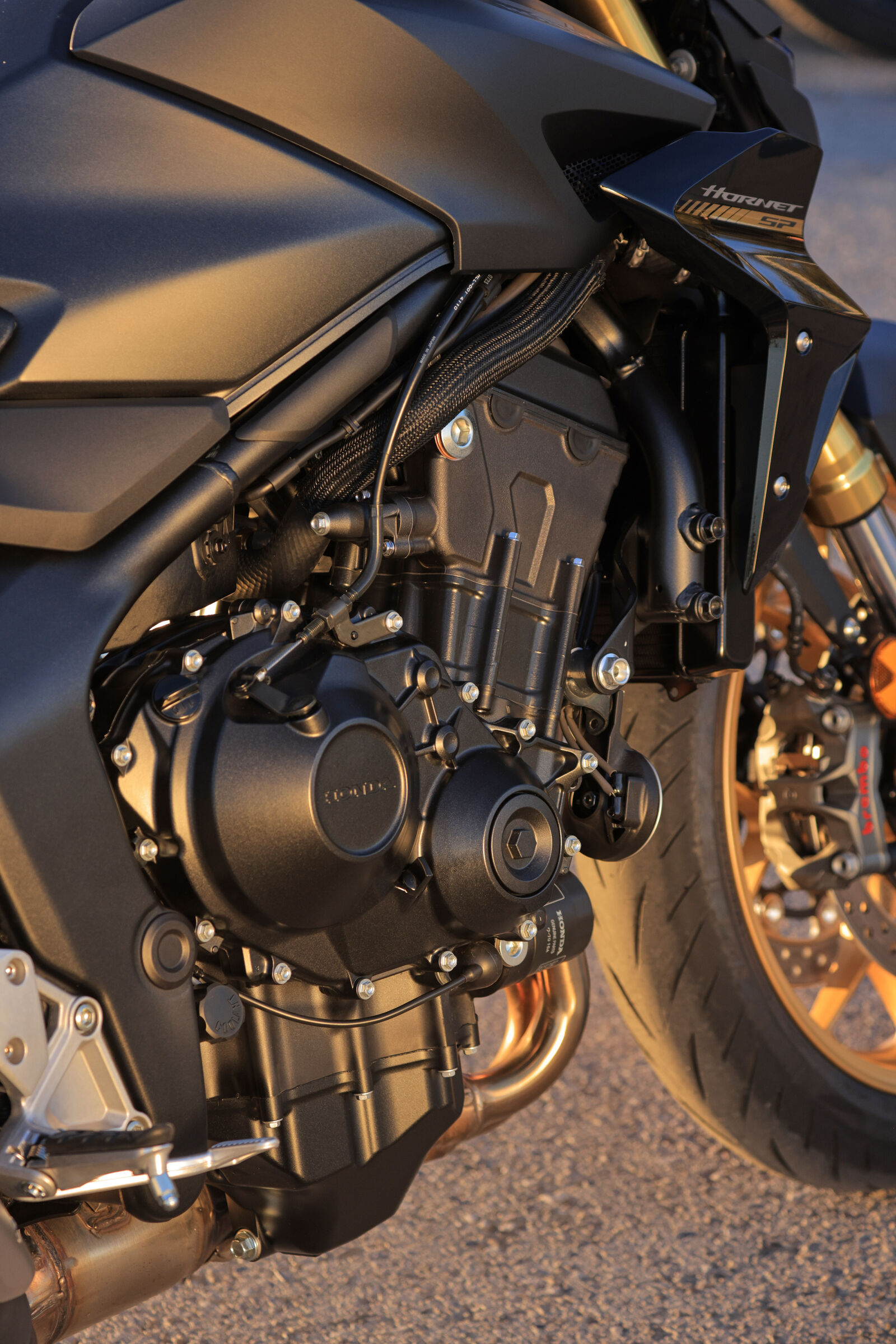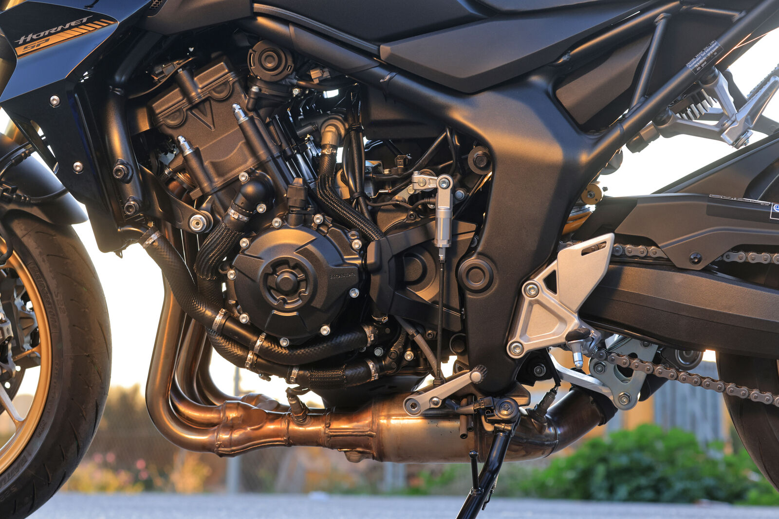 Der flüssigkeitsgekühlte Vierzylinder Reihenmotor der Honda CB1000 SP Hornet bietet eine beeindruckende Leistung von 157 PS bei 11.000 U/min und ein maximales Drehmoment von 107 Nm bei 9.000 U/min. Er ist bekannt für seine Drehfreudigkeit und liefert besonders im oberen Drehzahlbereich eine kraftvolle Performance.