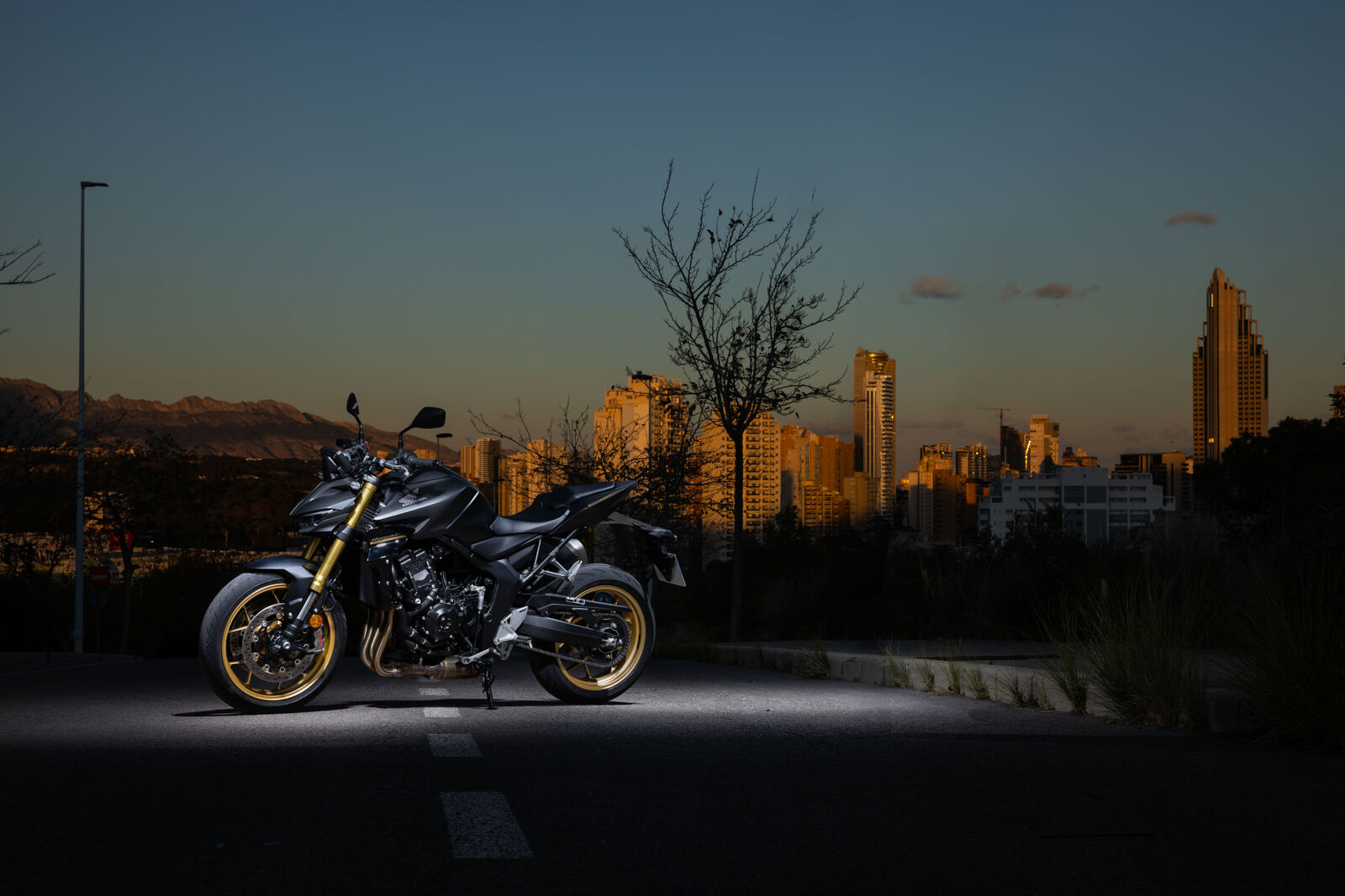 Die Honda CB1000 SP Hornet misst 2.140 mm in der Länge, 790 mm in der Breite und 1.085 mm in der Höhe. Diese kompakten Abmessungen tragen zu einem agilen Handling bei und ermöglichen ein schnelles Einlenken, was das Fahrvergnügen erhöht.