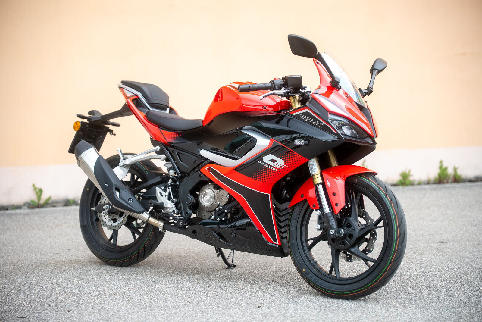 Die QJ Motor SRK 125 R 2025 ist mit CST-Reifen ausgestattet, die für die meisten Fahrbedingungen ausreichend Grip bieten. Trotz ihres preiswerten Segments wird empfohlen, auf qualitativ hochwertigere Reifen zu setzen, wenn man sportliches Fahren bevorzugt.